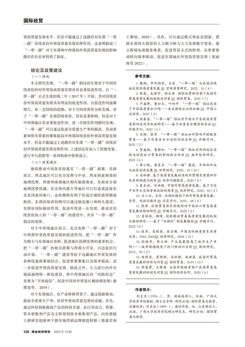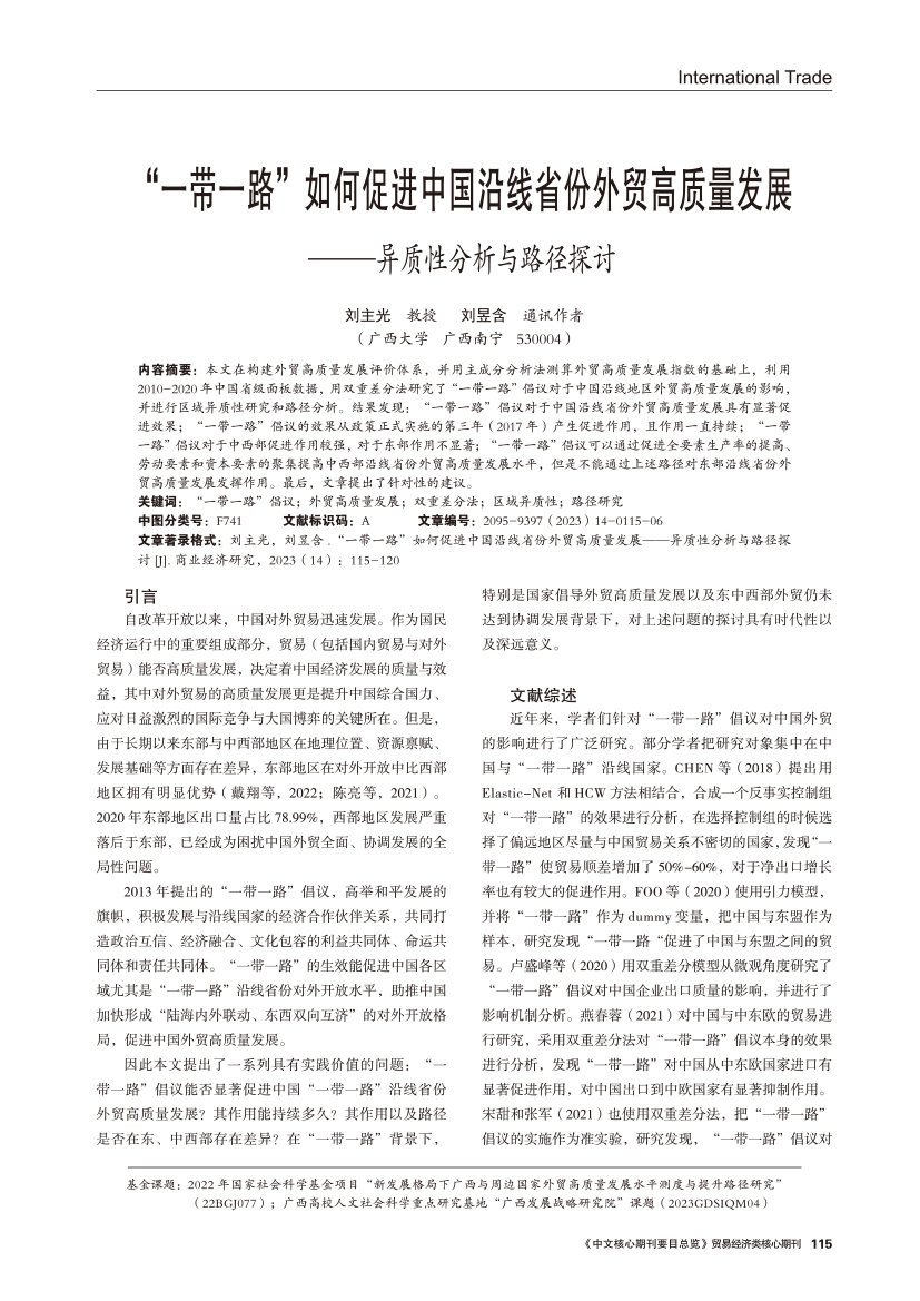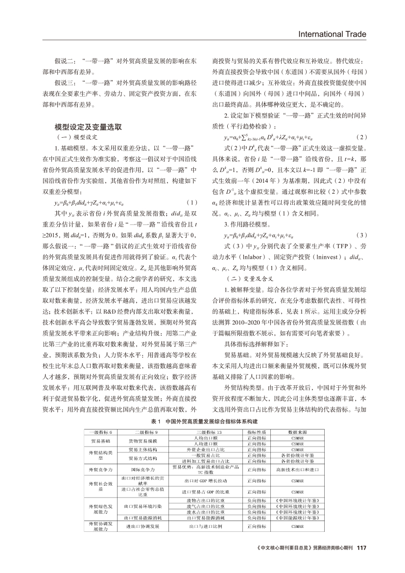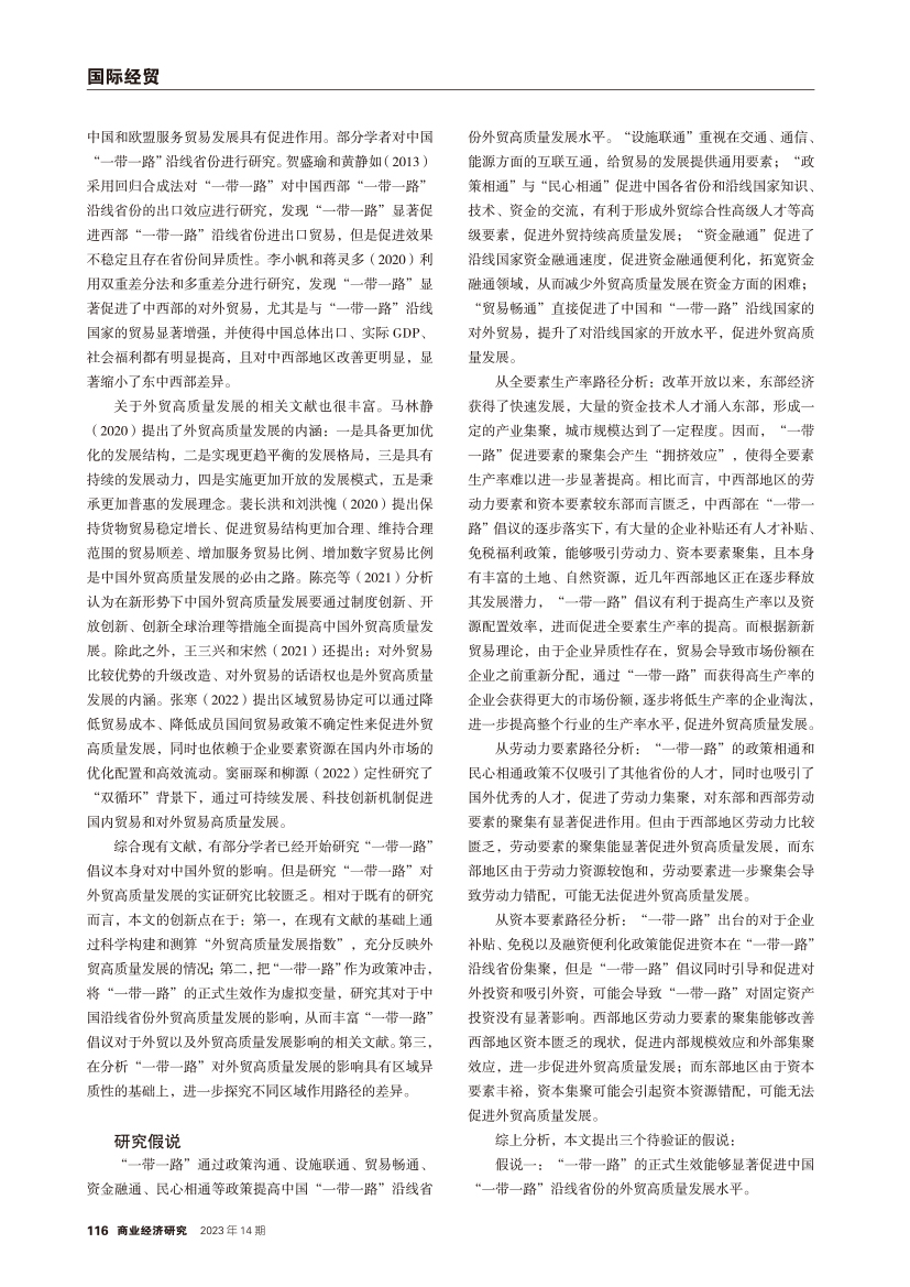 | “一带一路”如何促进中国沿线省份外贸高质量发展 ——异质性分析与路径探讨 |