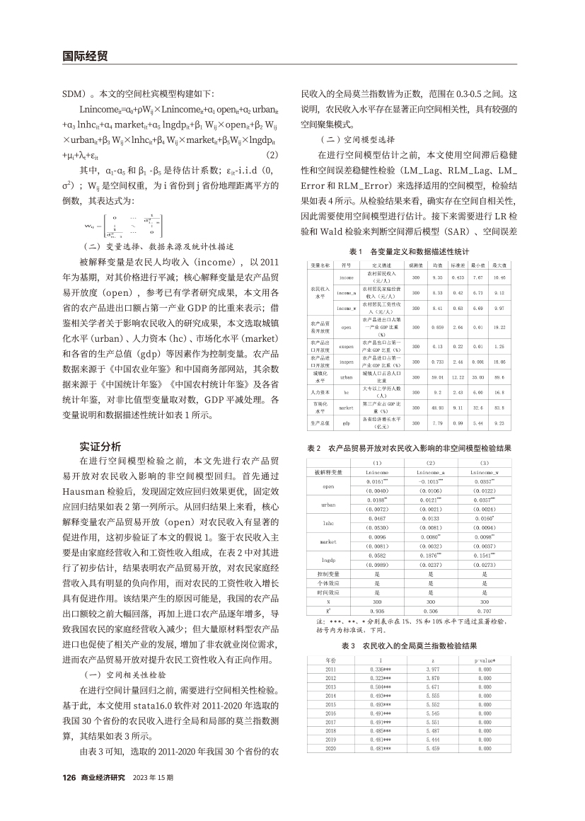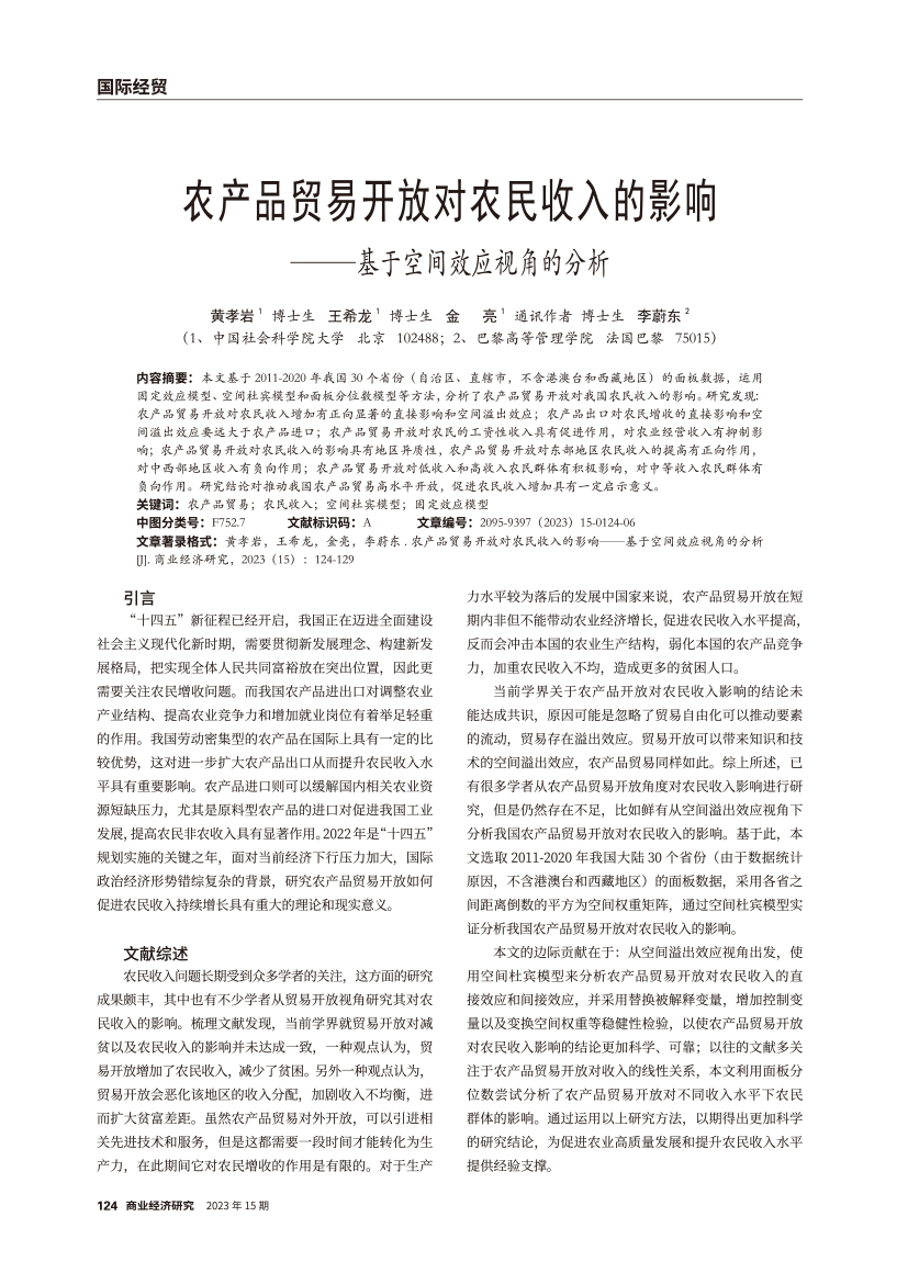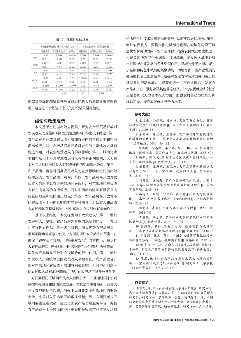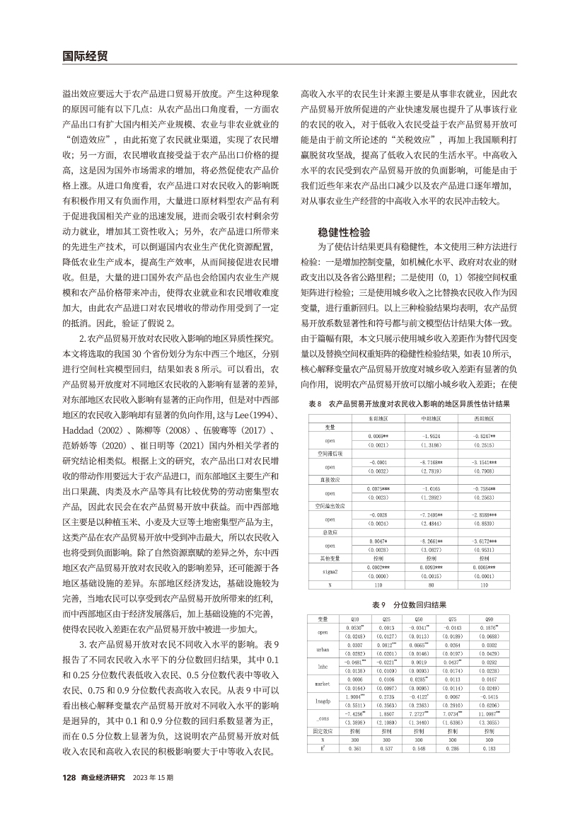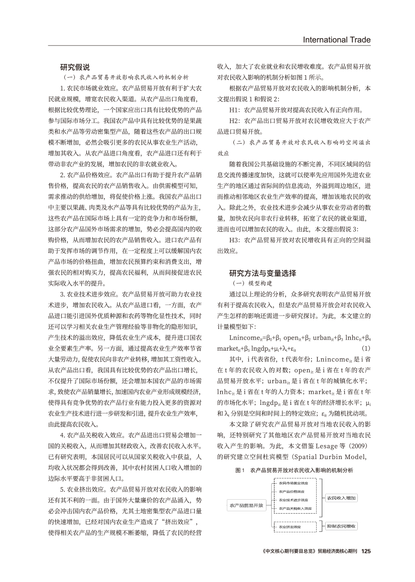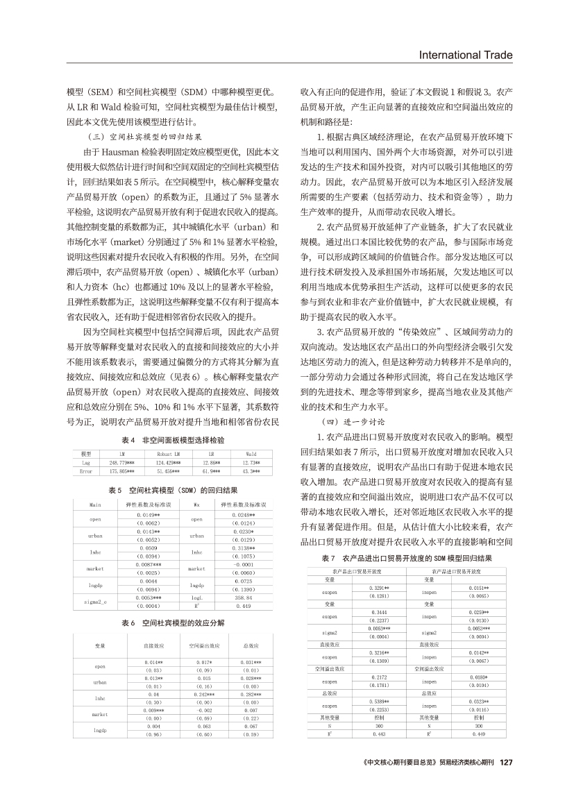 | 农产品贸易开放对农民收入的影响 ——基于空间效应视角的分析 |