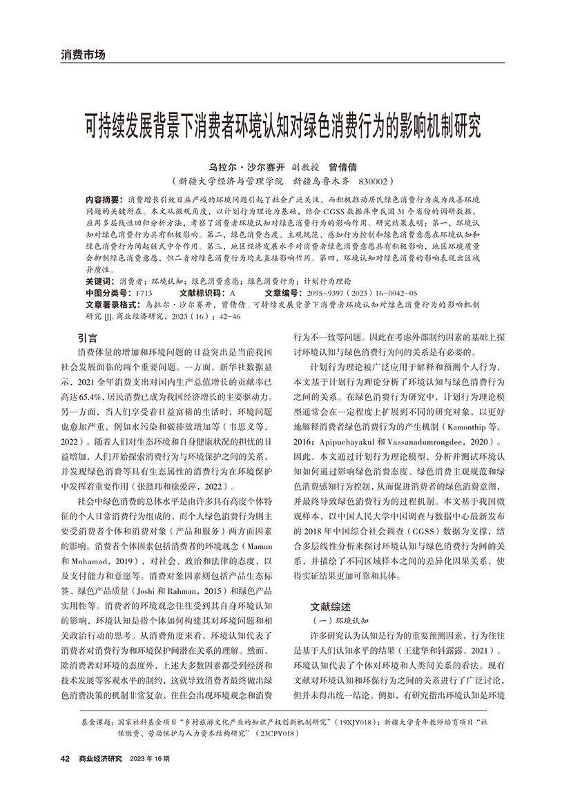 | 可持续发展背景下消费者环境认知对绿色消费行为的影响机制研究 |