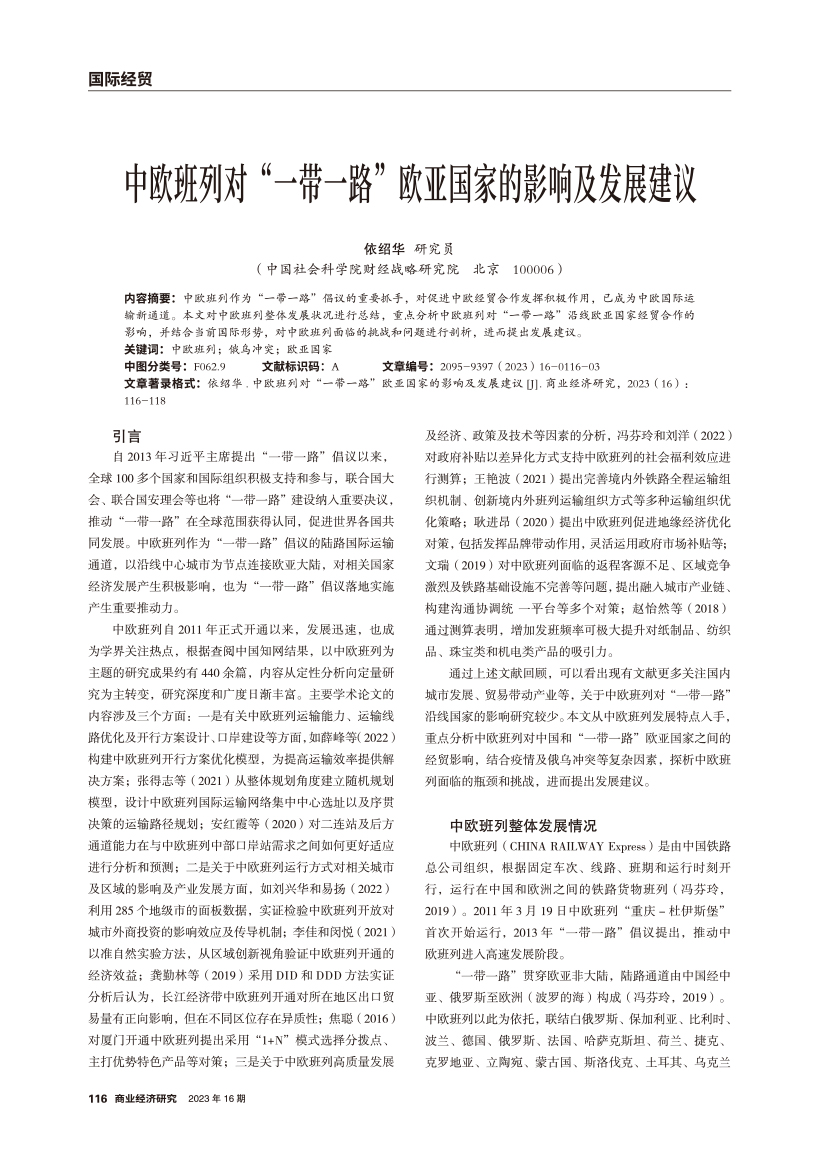 | 中欧班列对“一带一路”欧亚国家的影响及发展建议 |
