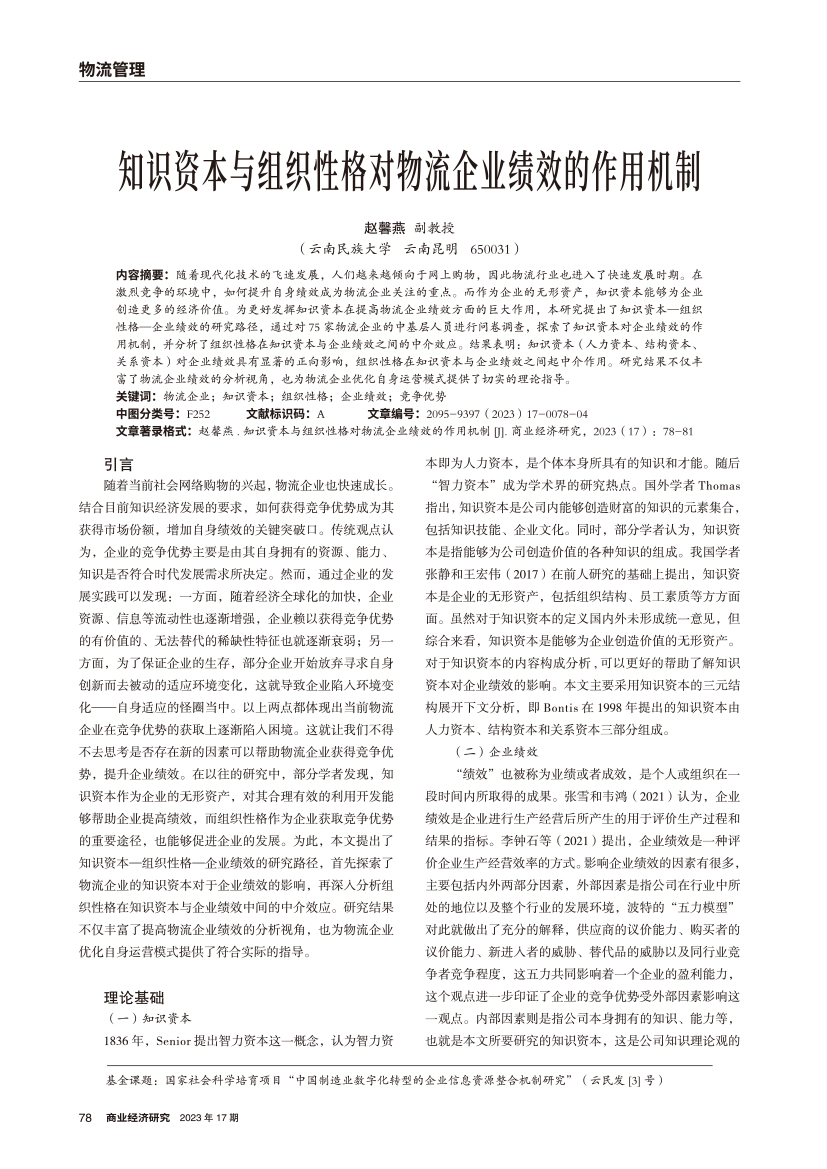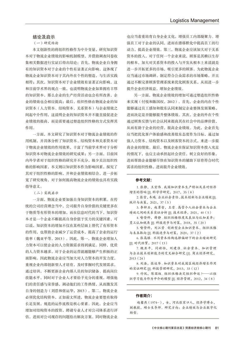 | 知识资本与组织性格对物流企业绩效的作用机制 |