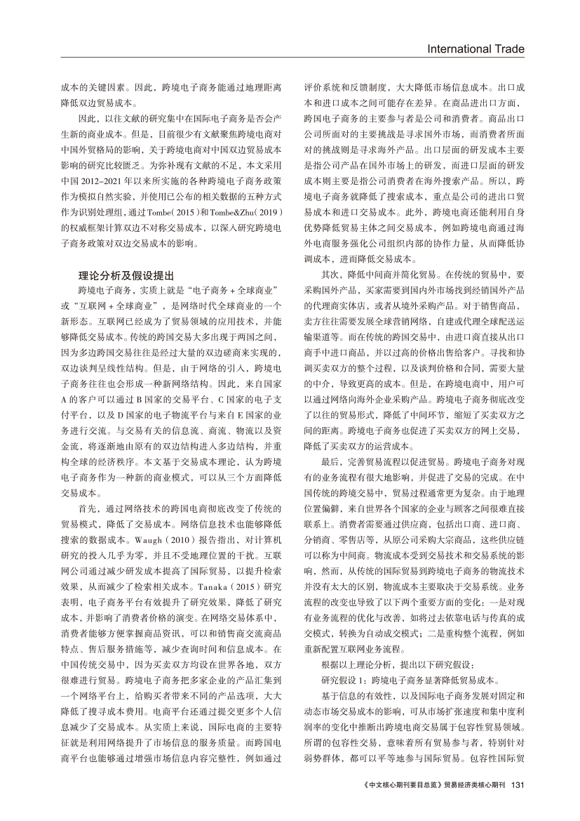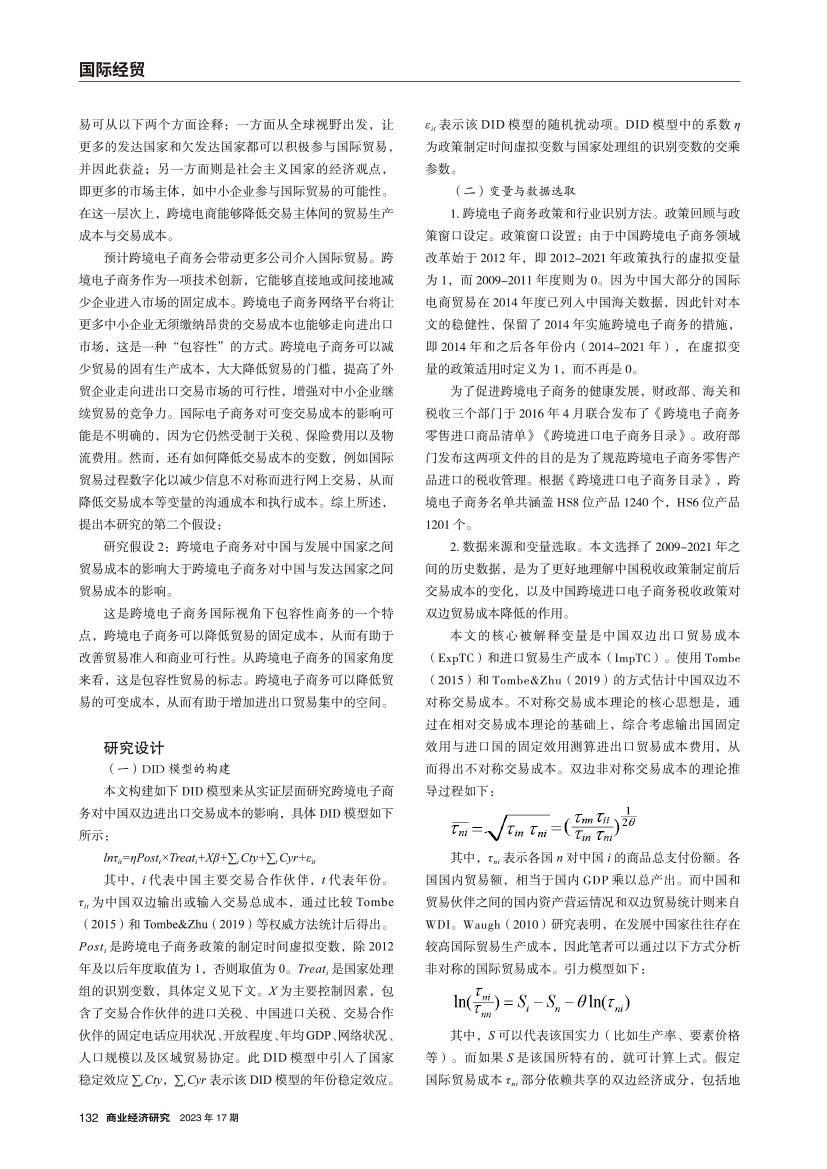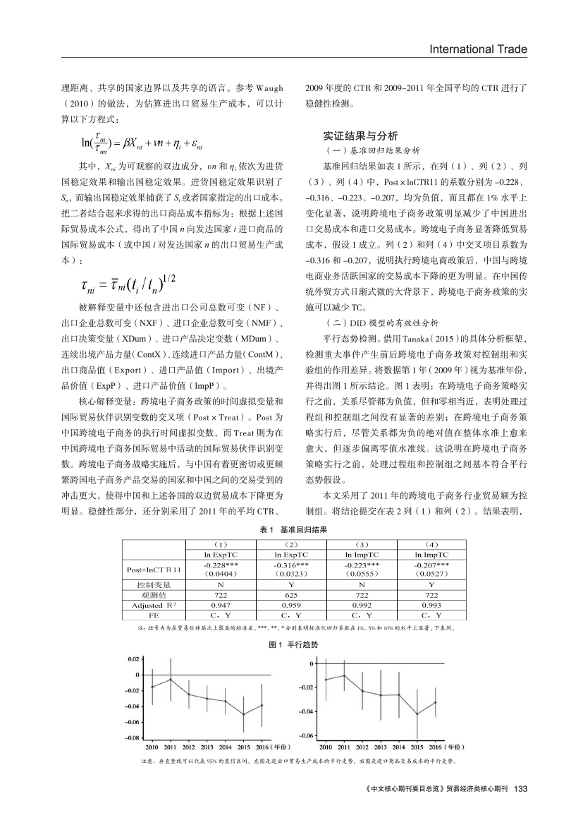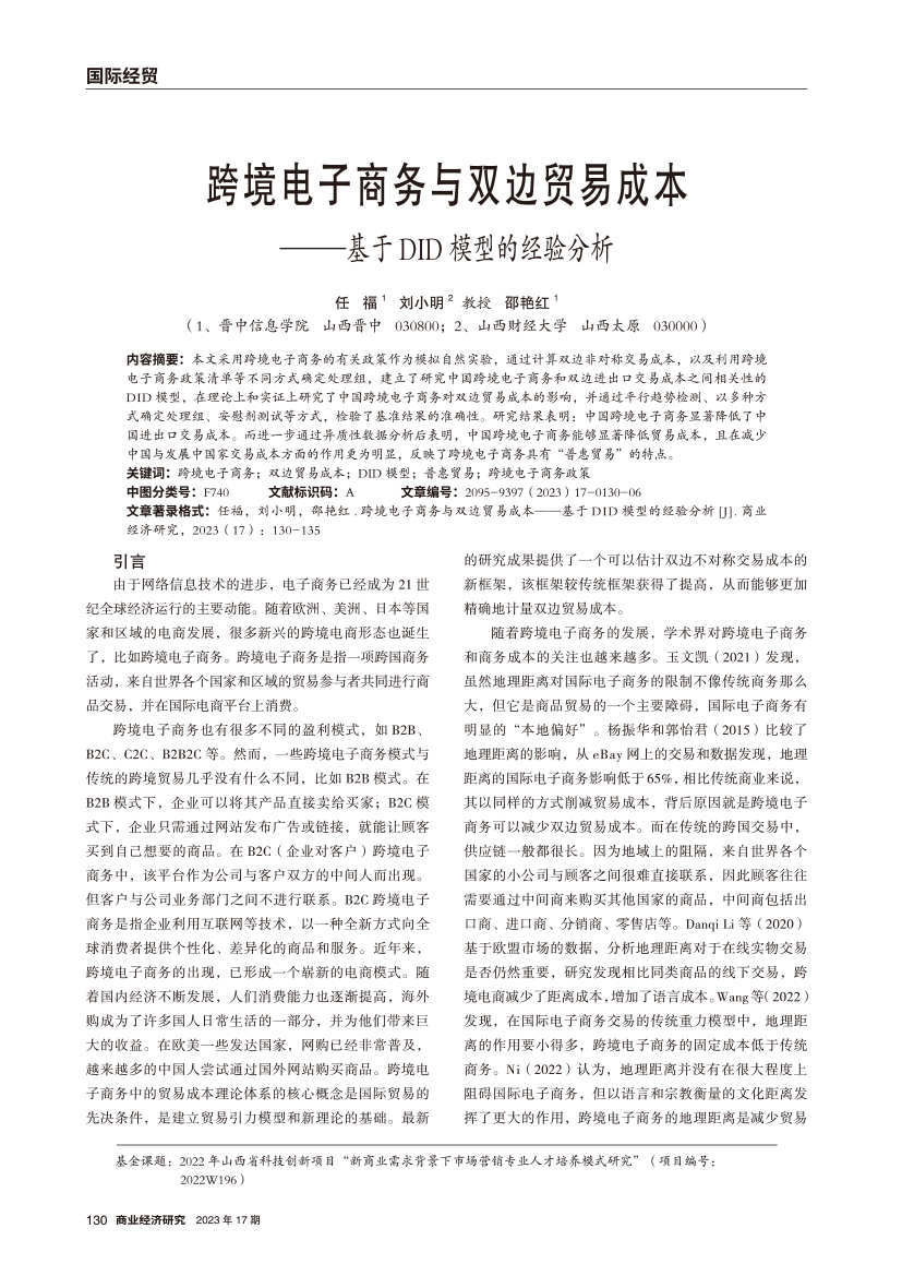 | 跨境电子商务与双边贸易成本 ——基于DID模型的经验分析 |