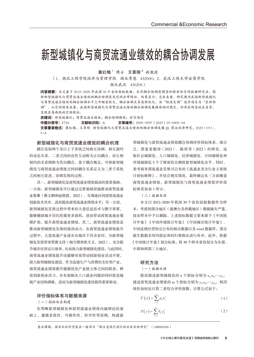 | 新型城镇化与商贸流通业绩效的耦合协调发展 |