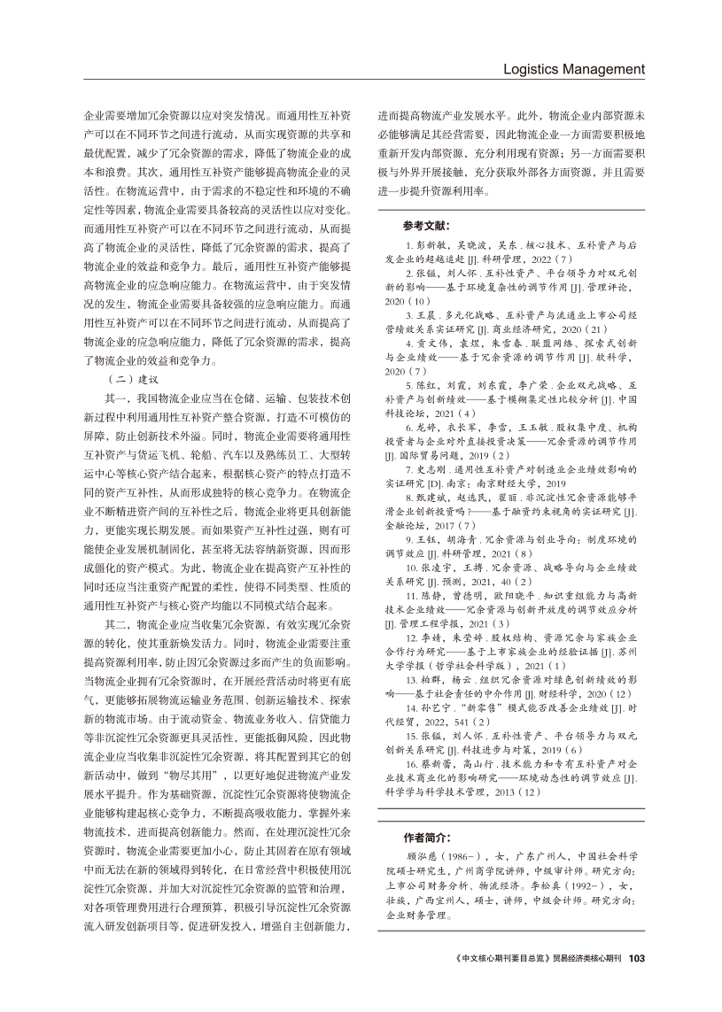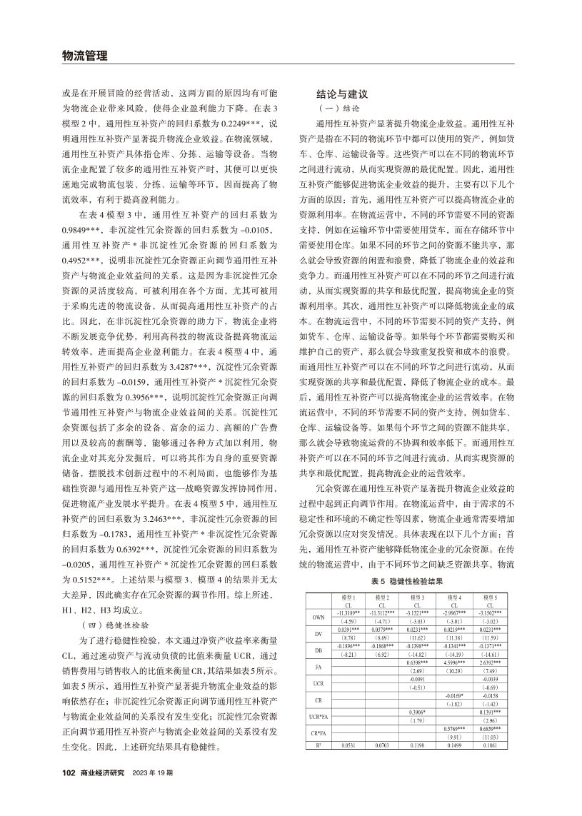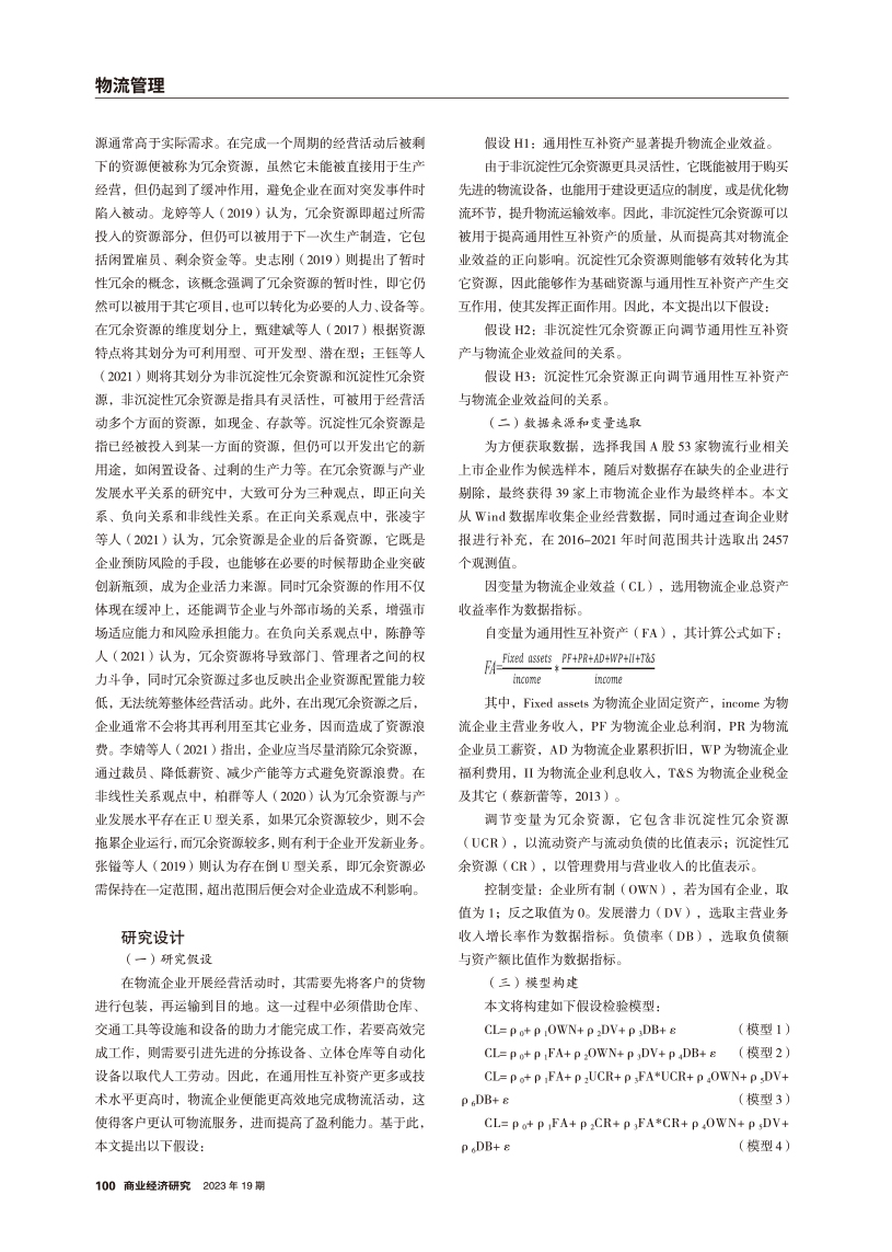 | 通用性互补资产影响物流企业效益的机制分析 ——考虑冗余资源的调节效应 |