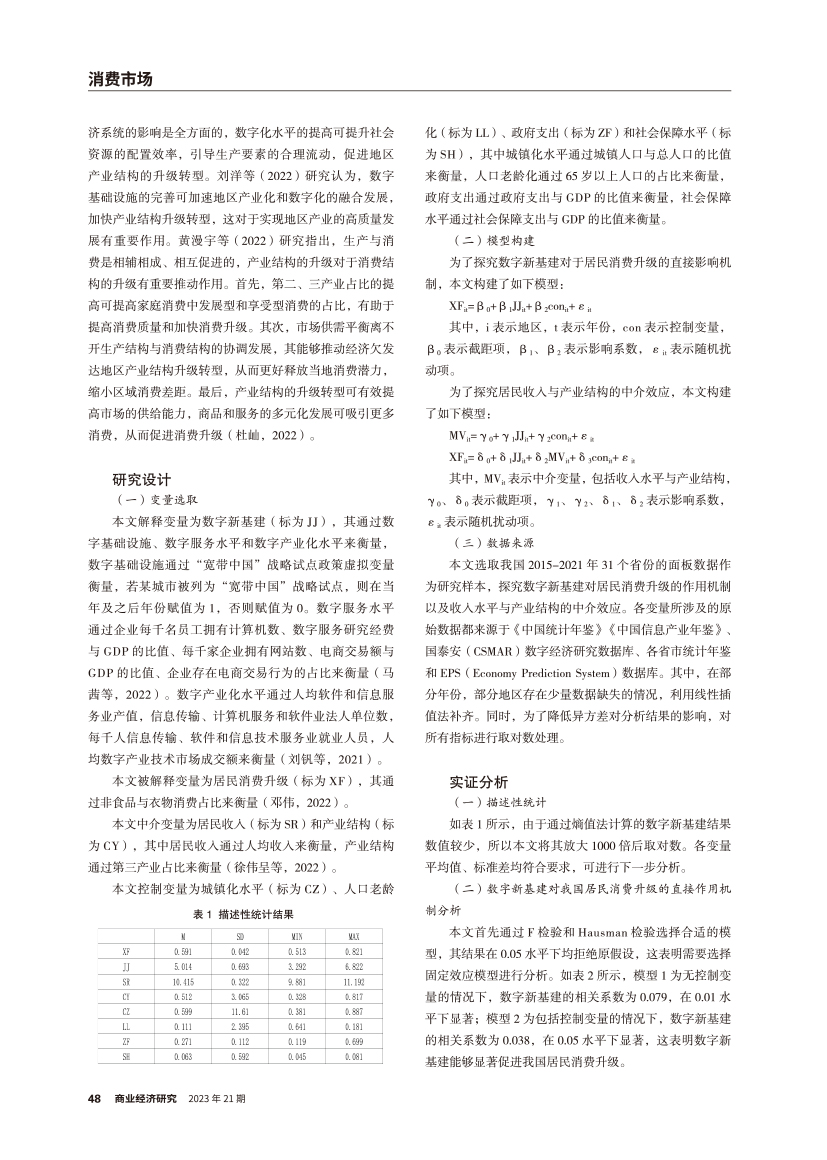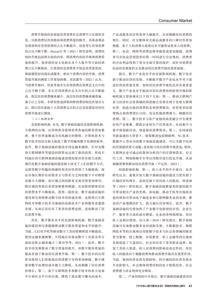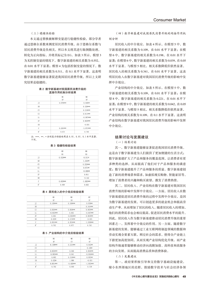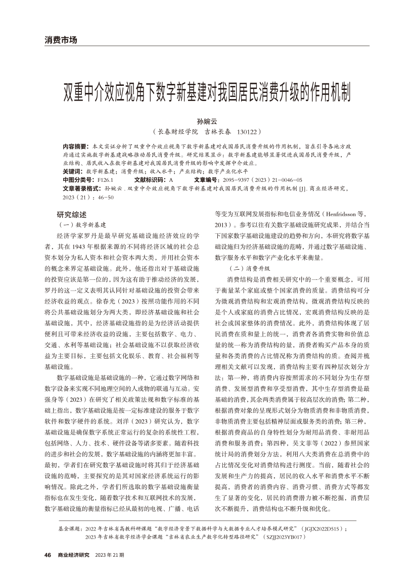 | 双重中介效应视角下数字新基建对我国居民消费升级的作用机制 |