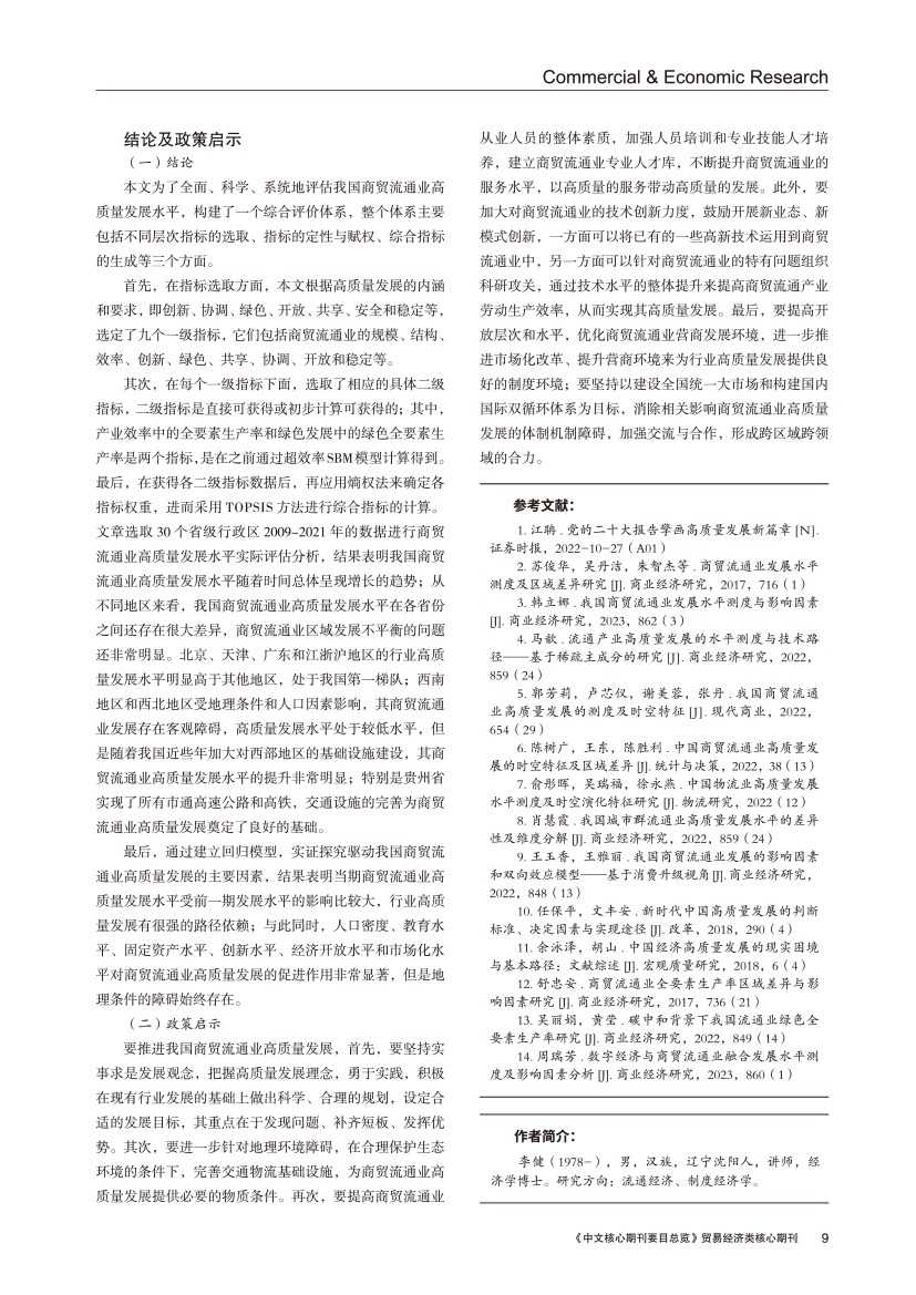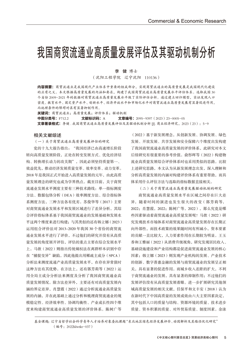| 我国商贸流通业高质量发展评估及其驱动机制分析 |