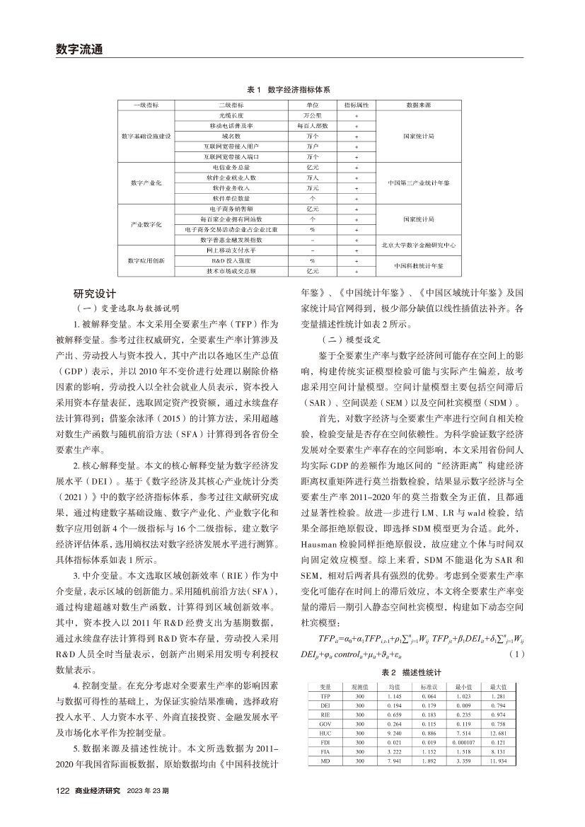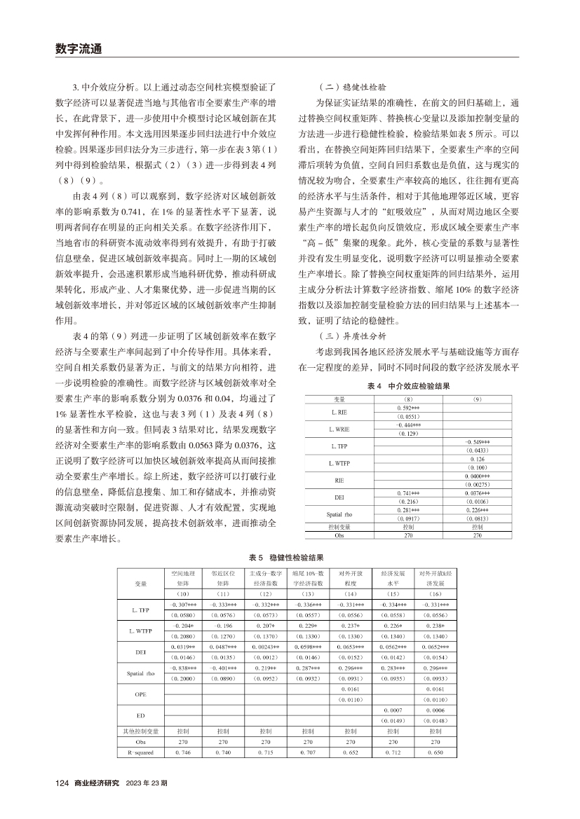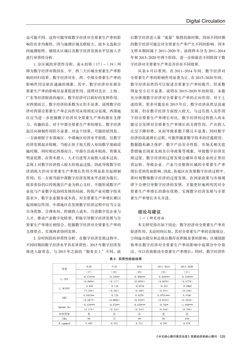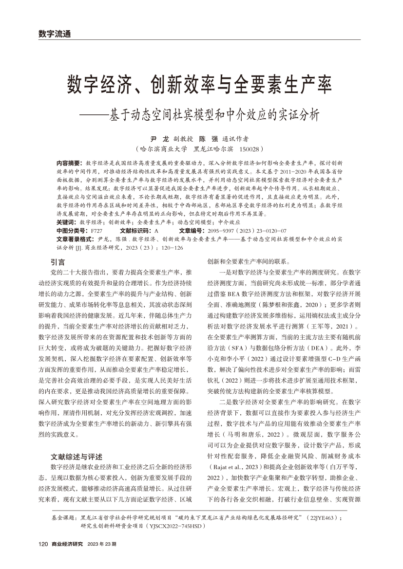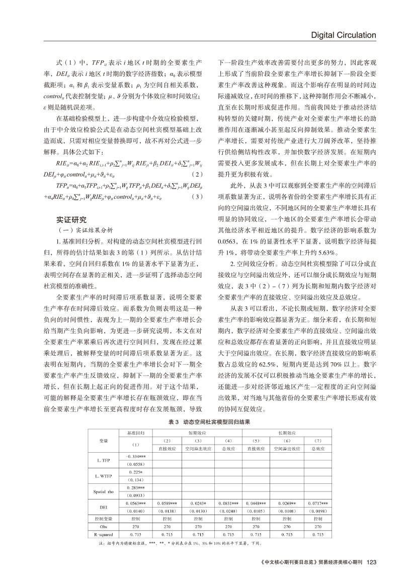 | 数字经济、创新效率与全要素生产率 ——基于动态空间杜宾模型和中介效应的实证分析 |