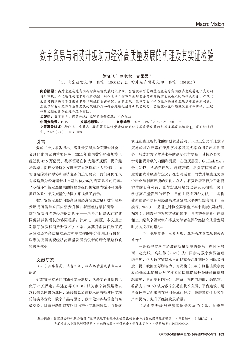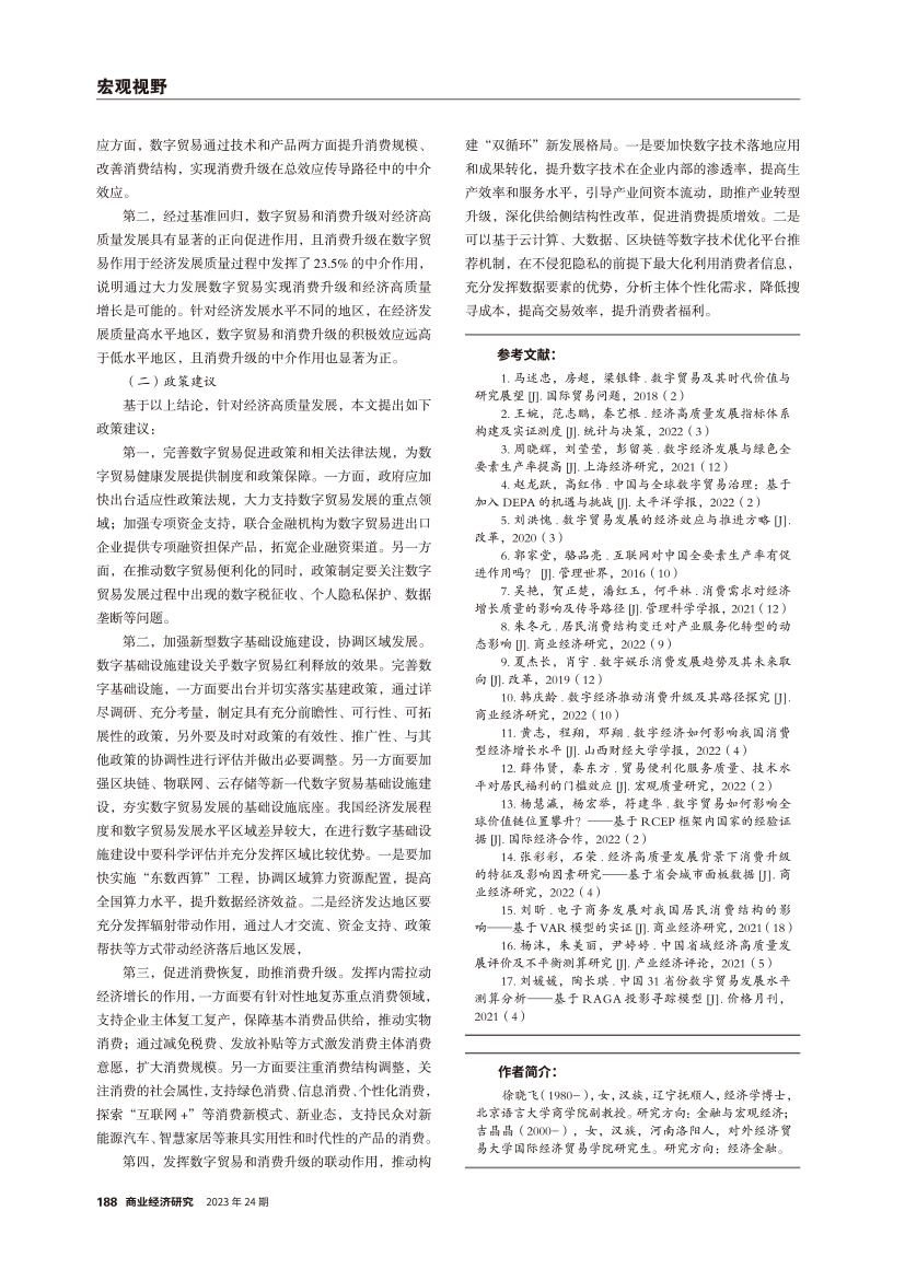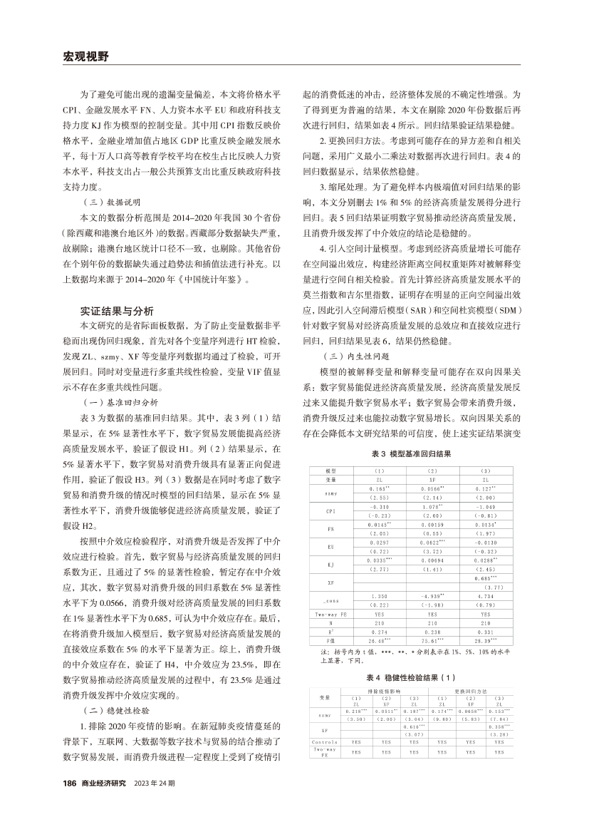| 数字贸易与消费升级助力经济高质量发展的机理及其实证检验 |