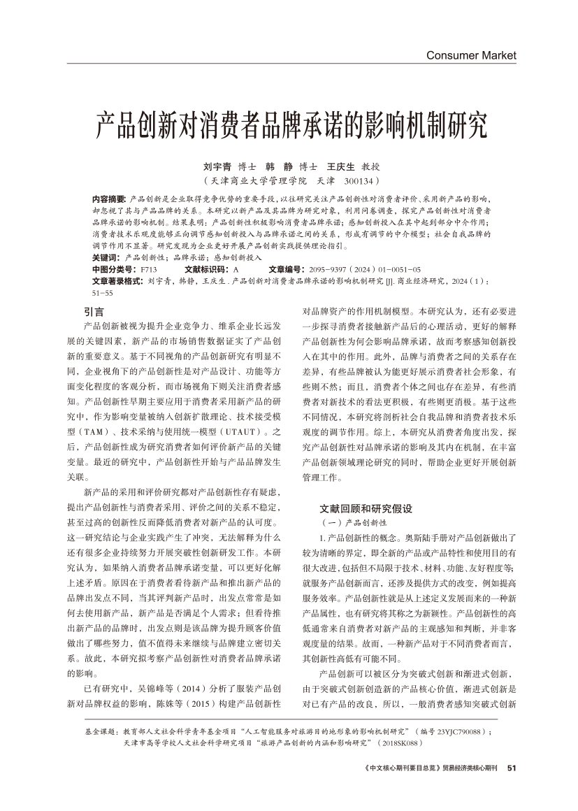| 产品创新对消费者品牌承诺的影响机制研究 |