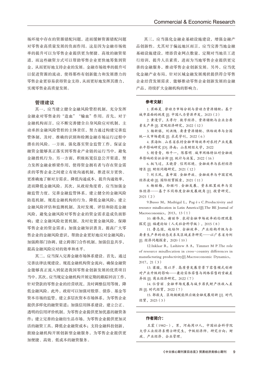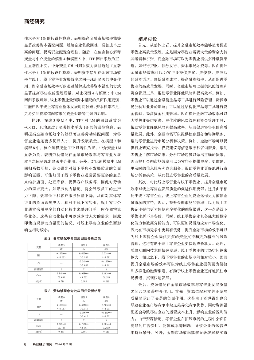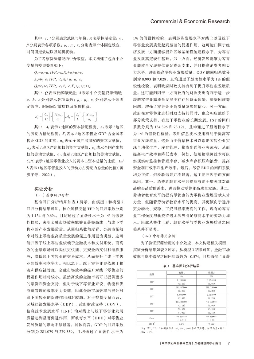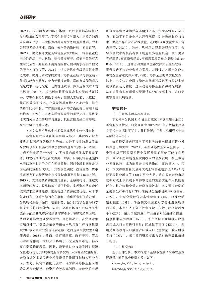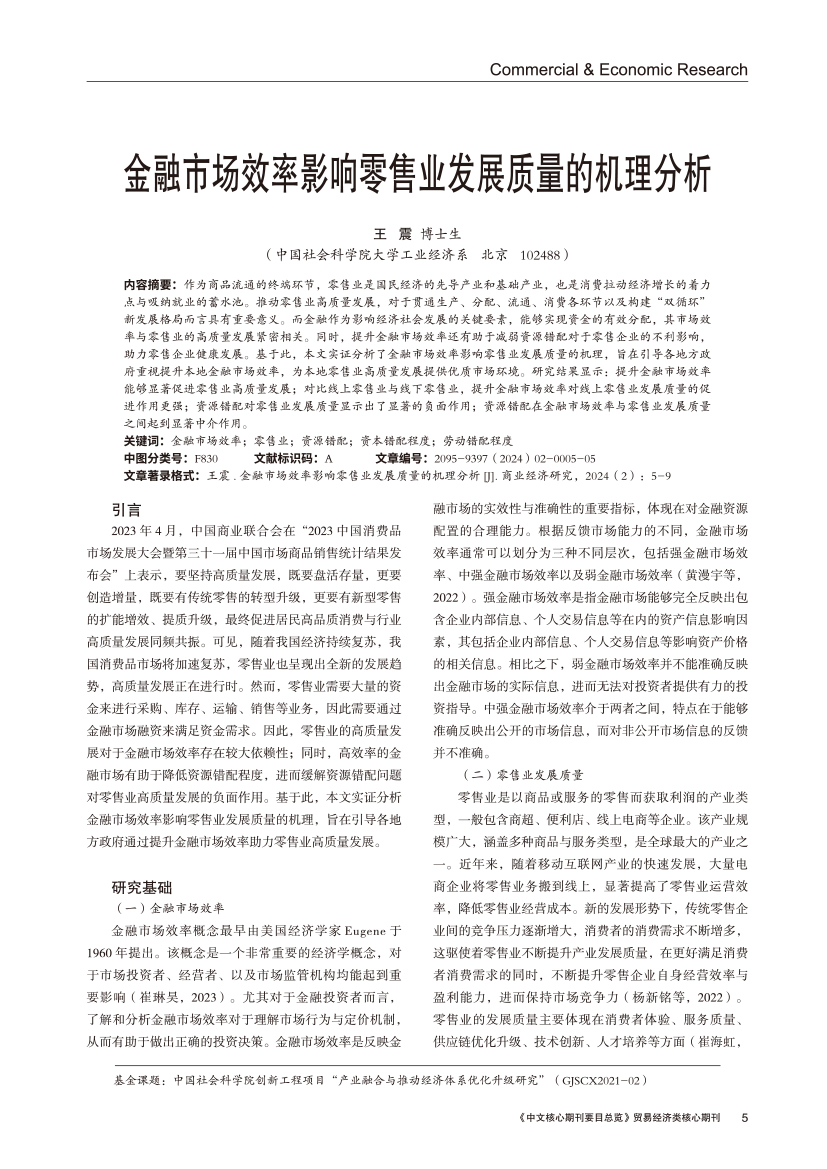 | 金融市场效率影响零售业发展质量的机理分析 |