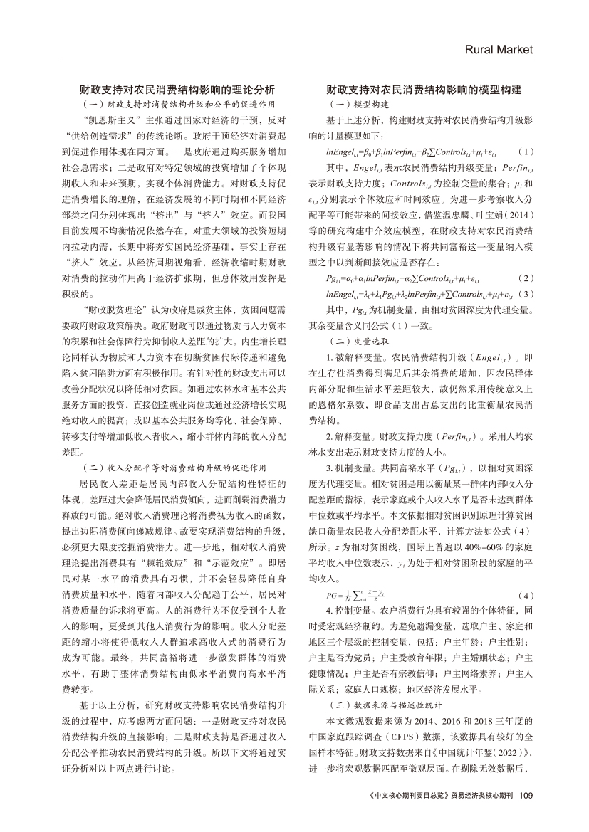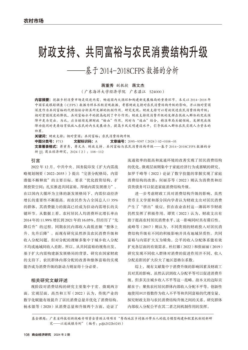 | 财政支持、共同富裕与农民消费结构升级 ——基于2014-2018CFPS数据的分析 |