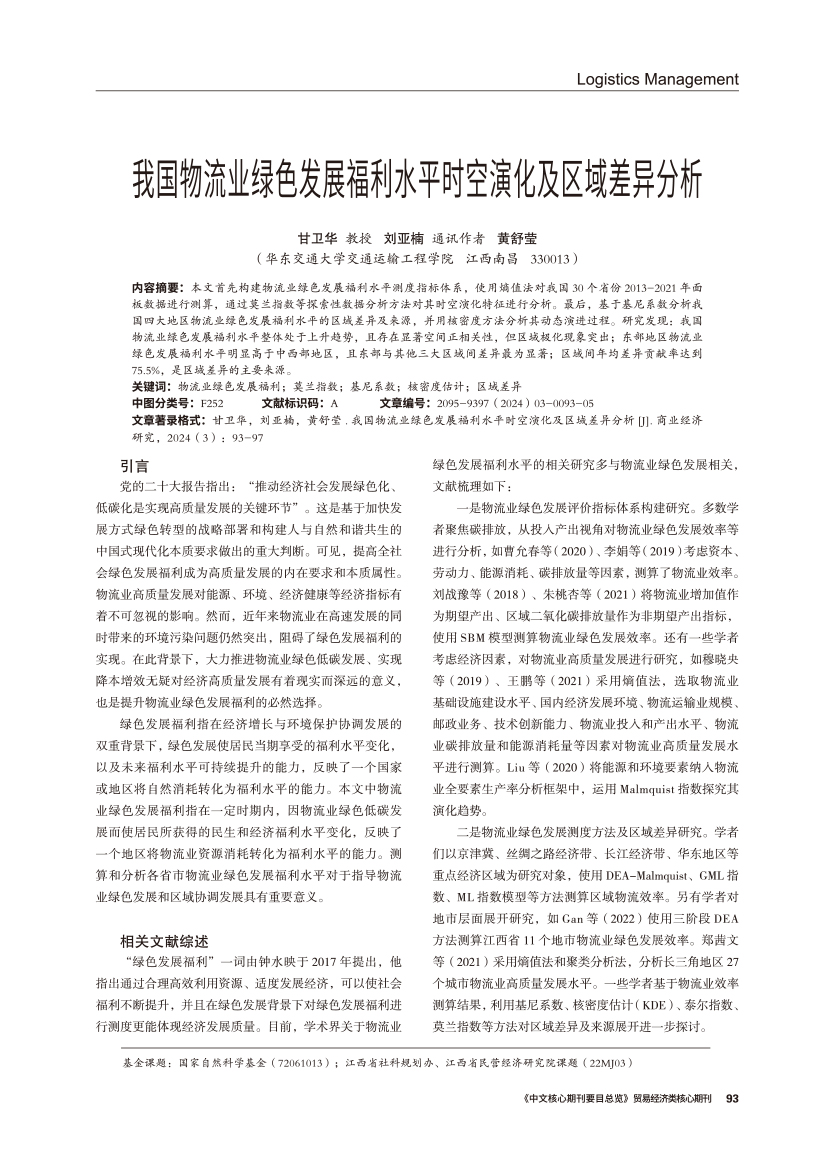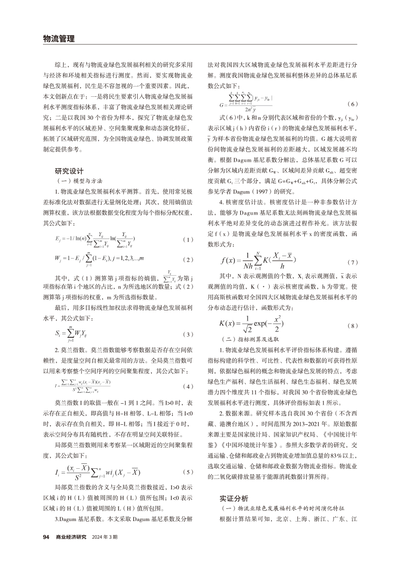 | 我国物流业绿色发展福利水平时空演化及区域差异分析 |
