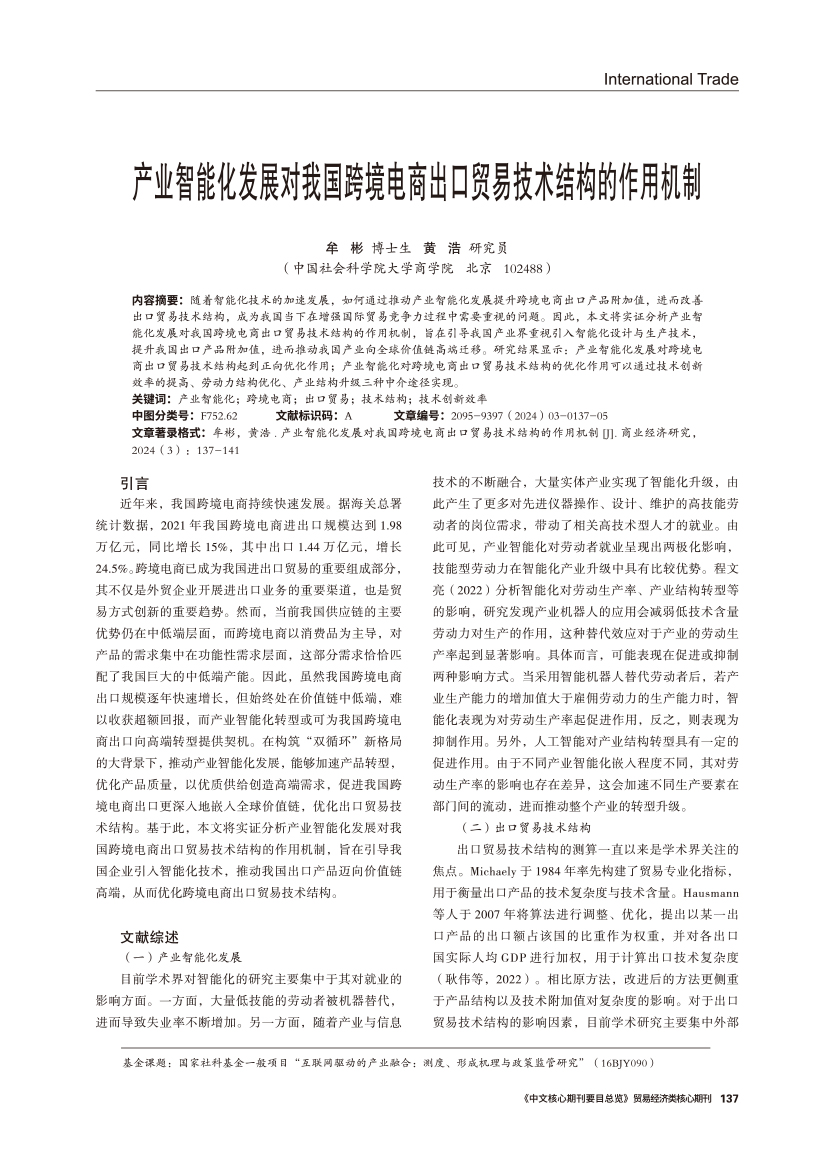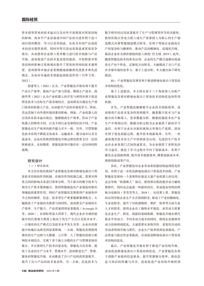 | 产业智能化发展对我国跨境电商出口贸易技术结构的作用机制 |
