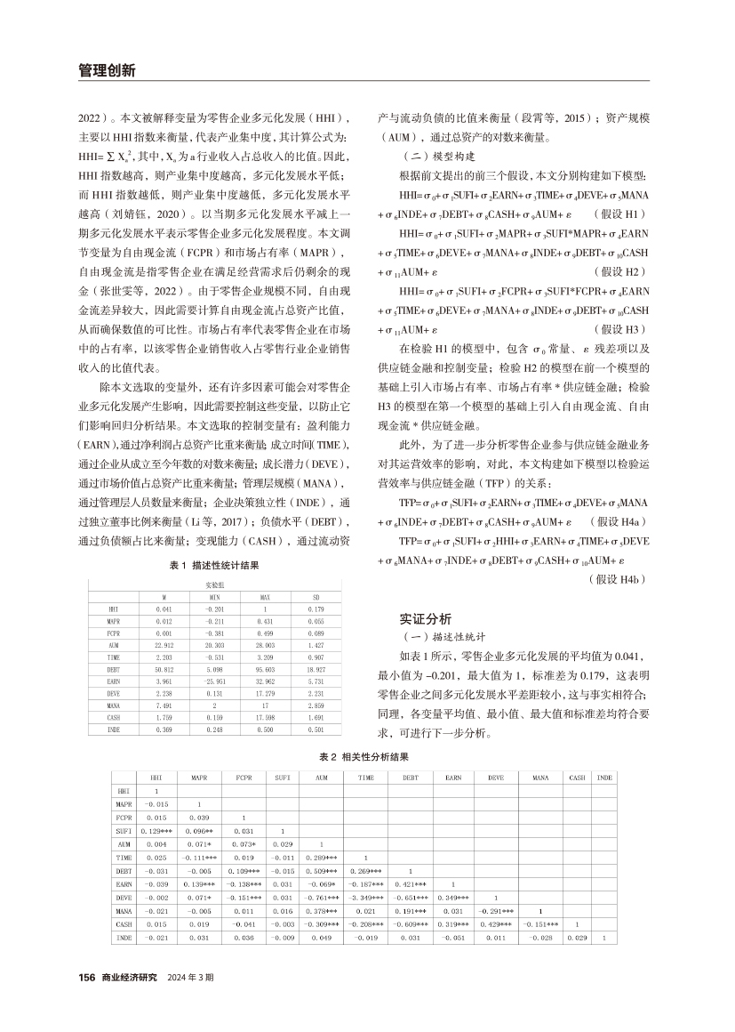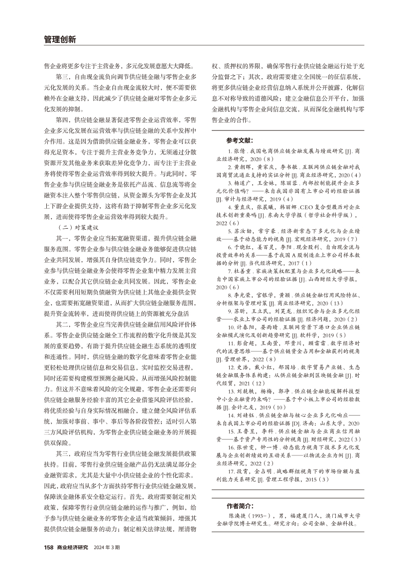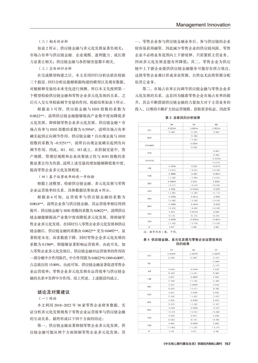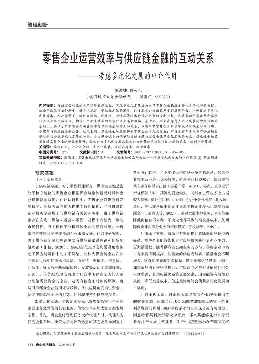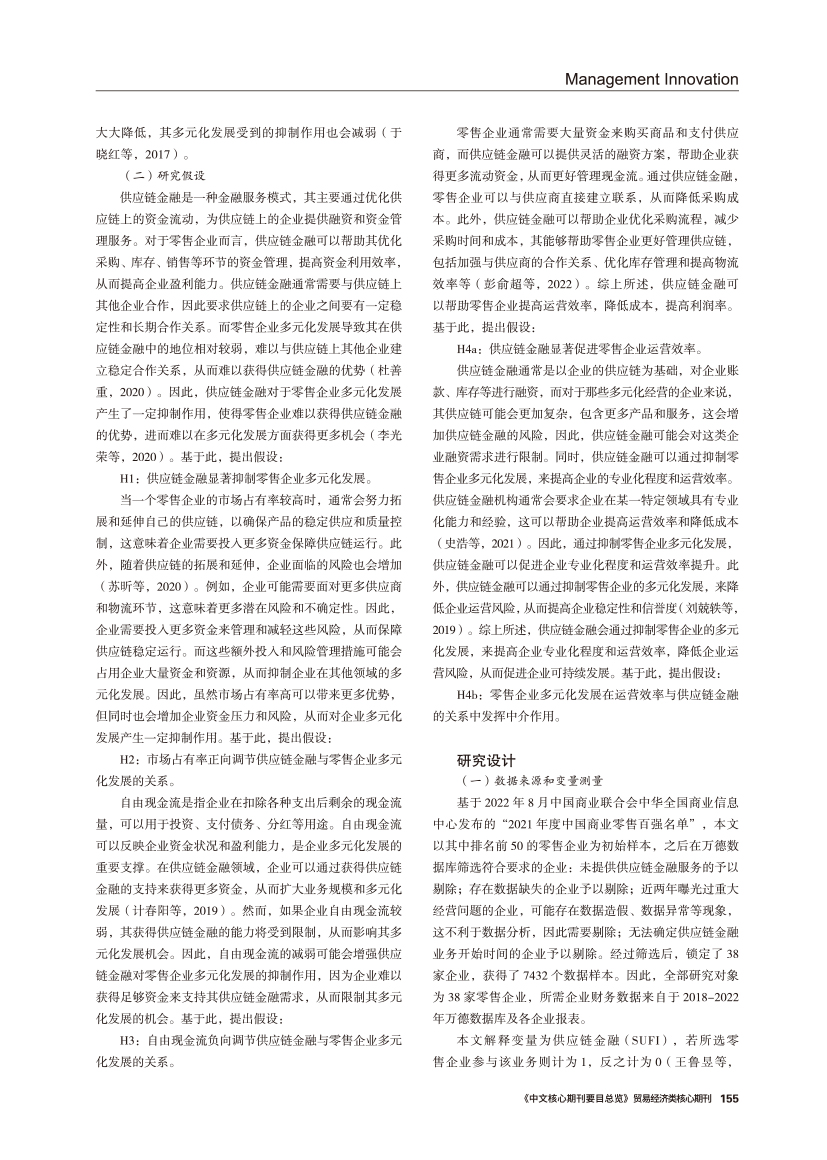 | 零售企业运营效率与供应链金融的互动关系 ——考虑多元化发展的中介作用 |