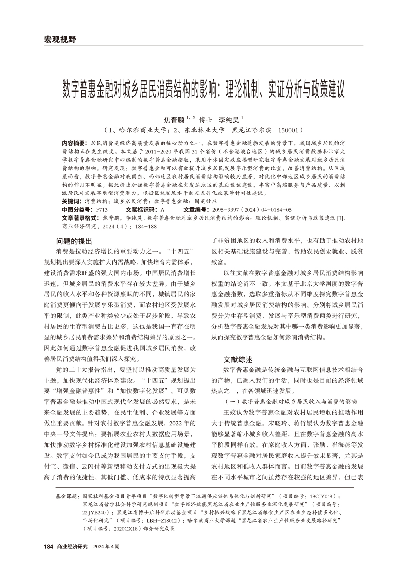 | 数字普惠金融对城乡居民消费结构的影响:理论机制、实证分析与政策建议 |