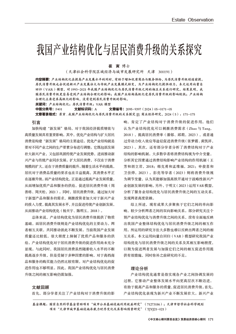 | 我国产业结构优化与居民消费升级的关系探究 |
