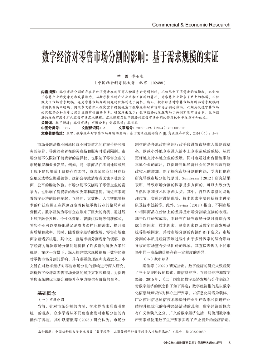 | 数字经济对零售市场分割的影响:基于需求规模的实证 |