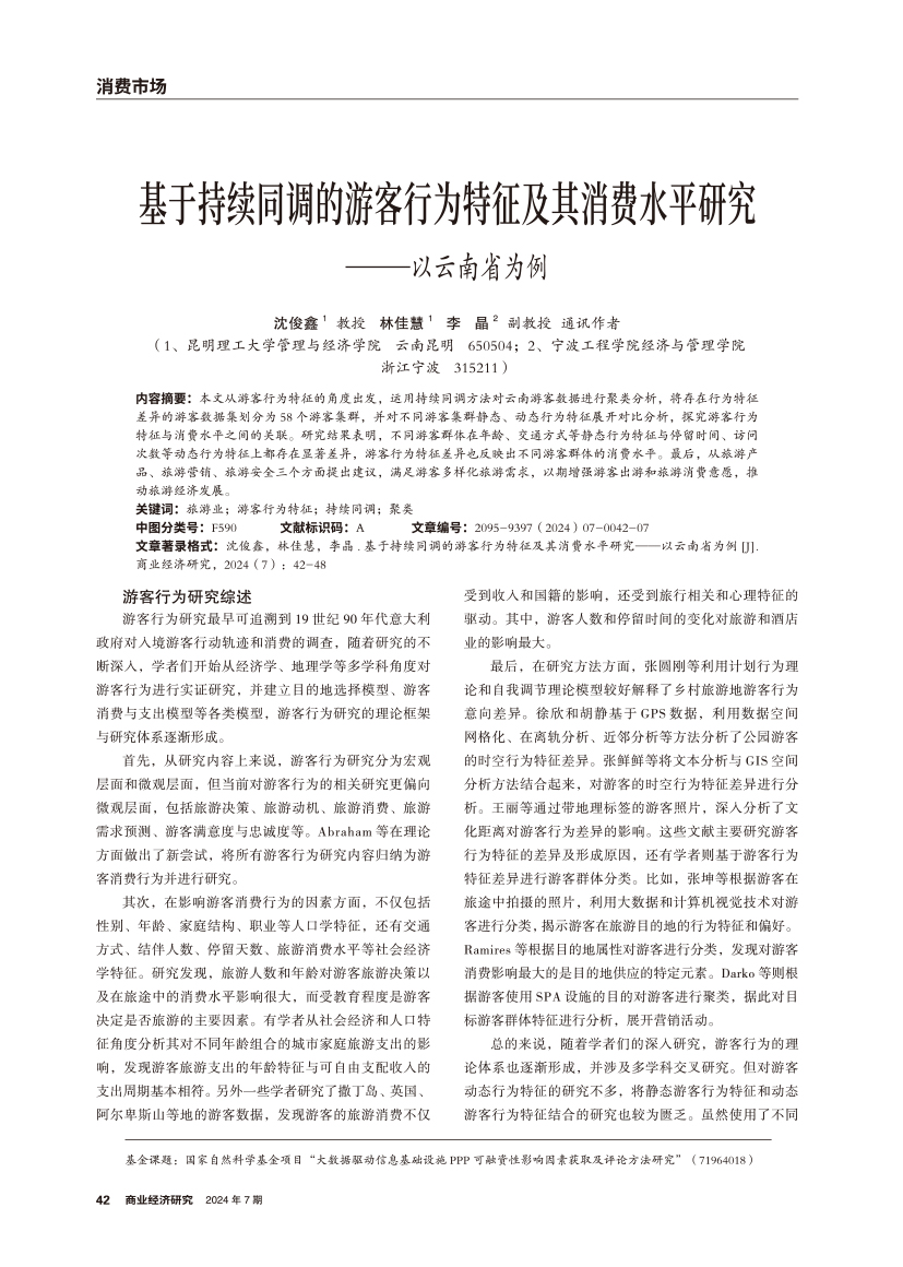 | 基于持续同调的游客行为特征及其消费水平研究 ——以云南省为例 |