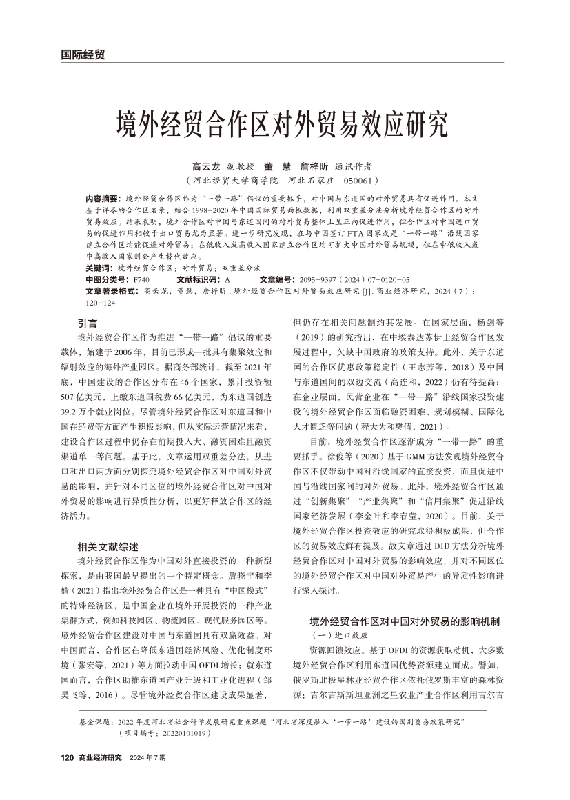 境外经贸合作区对外贸易效应研究