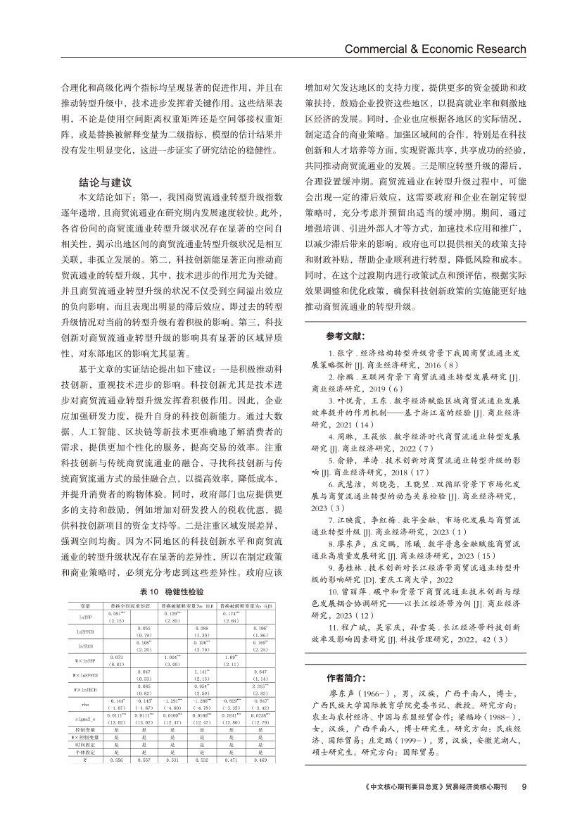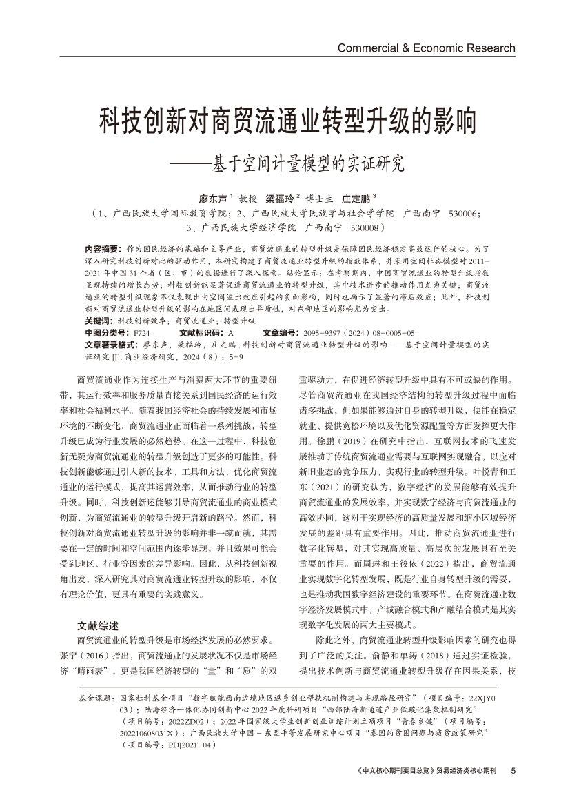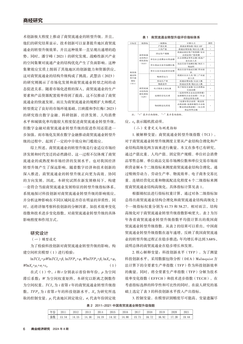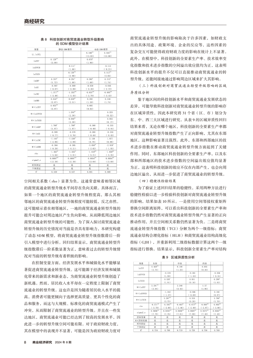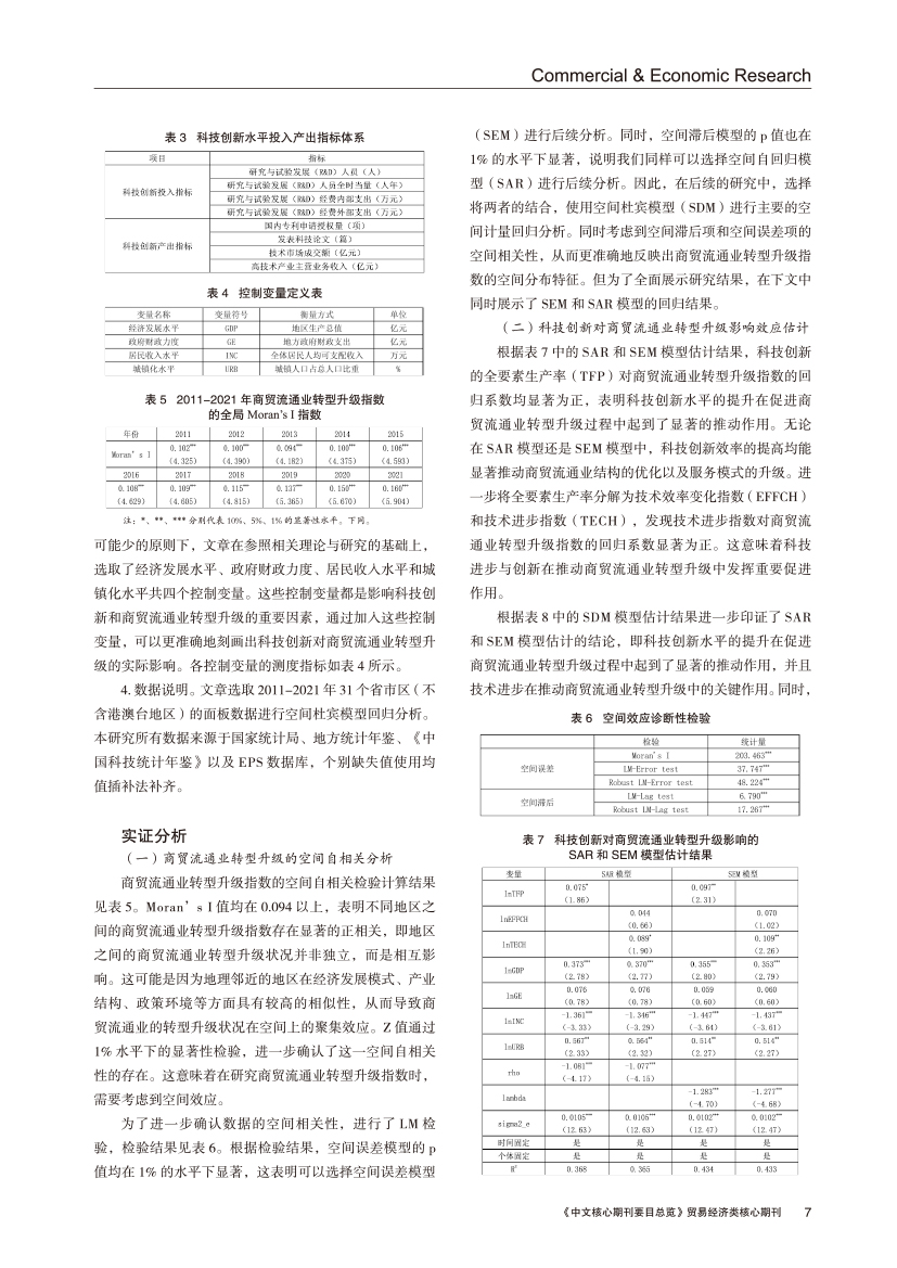 | 科技创新对商贸流通业转型升级的影响 ——基于空间计量模型的实证研究 |