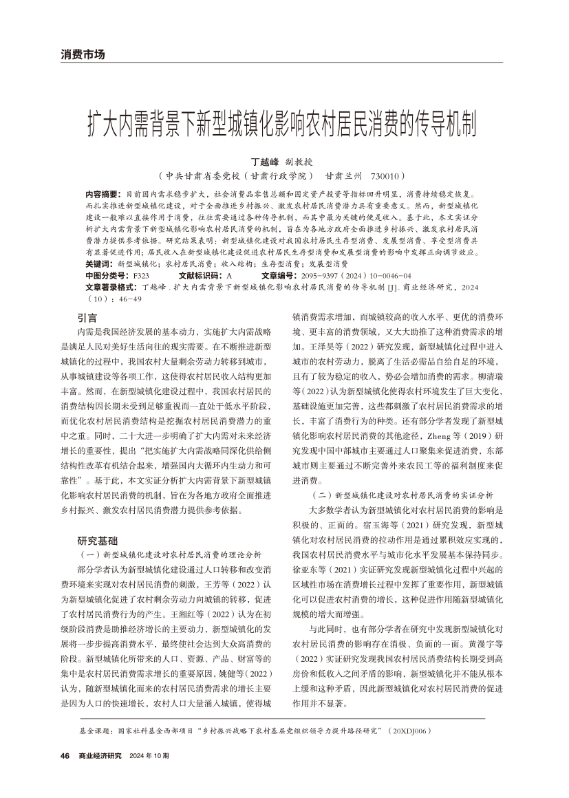 | 扩大内需背景下新型城镇化影响农村居民消费的传导机制 |