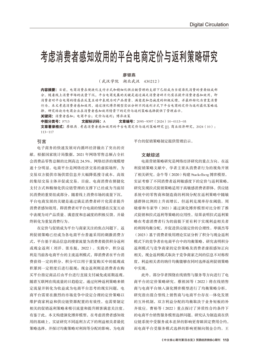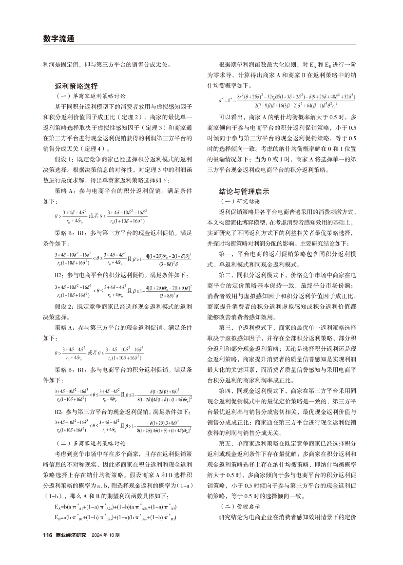 | 考虑消费者感知效用的平台电商定价与返利策略研究 |