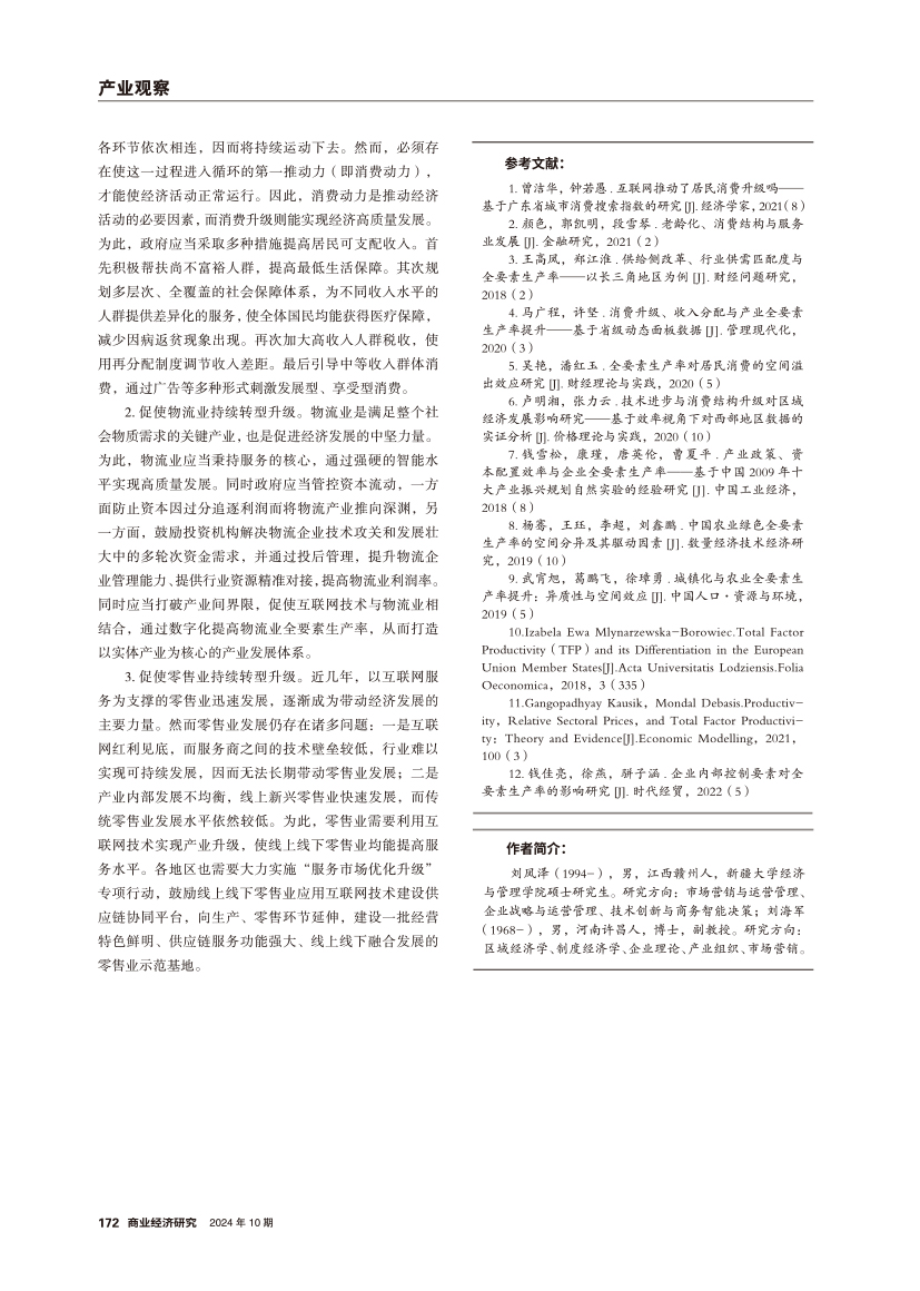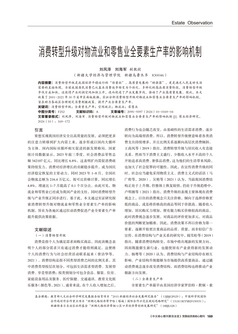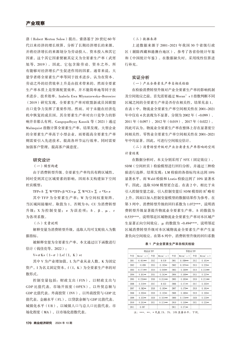 | 消费转型升级对物流业和零售业全要素生产率的影响机制 |