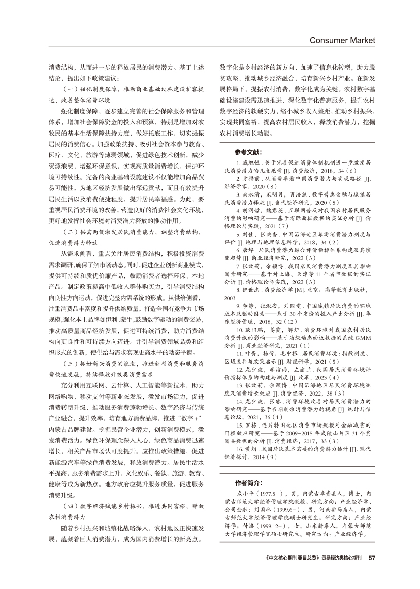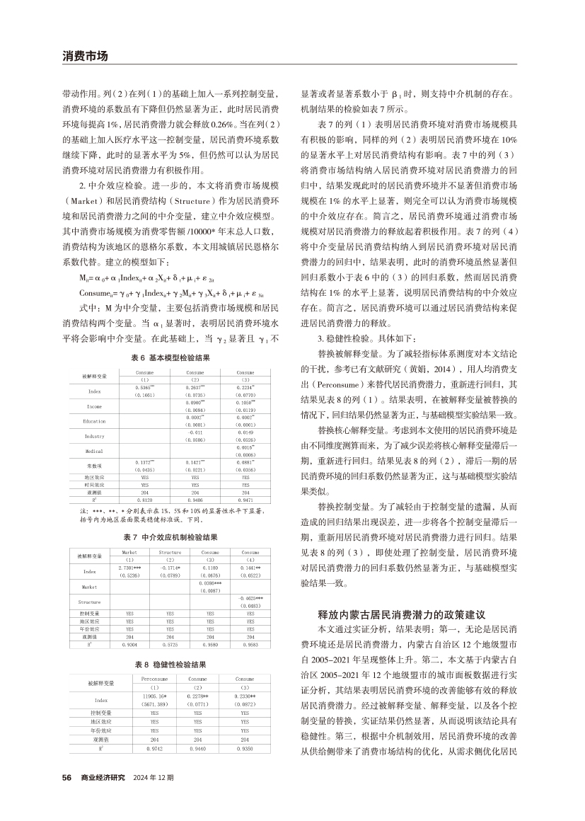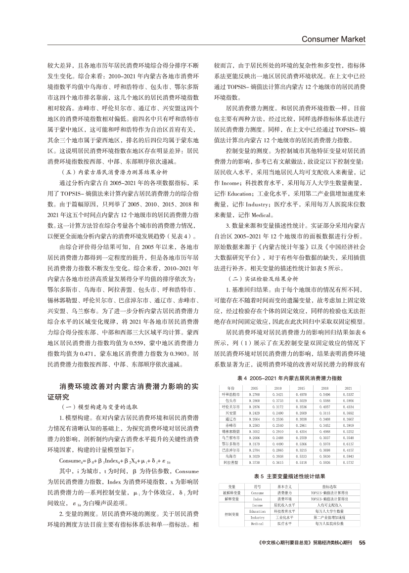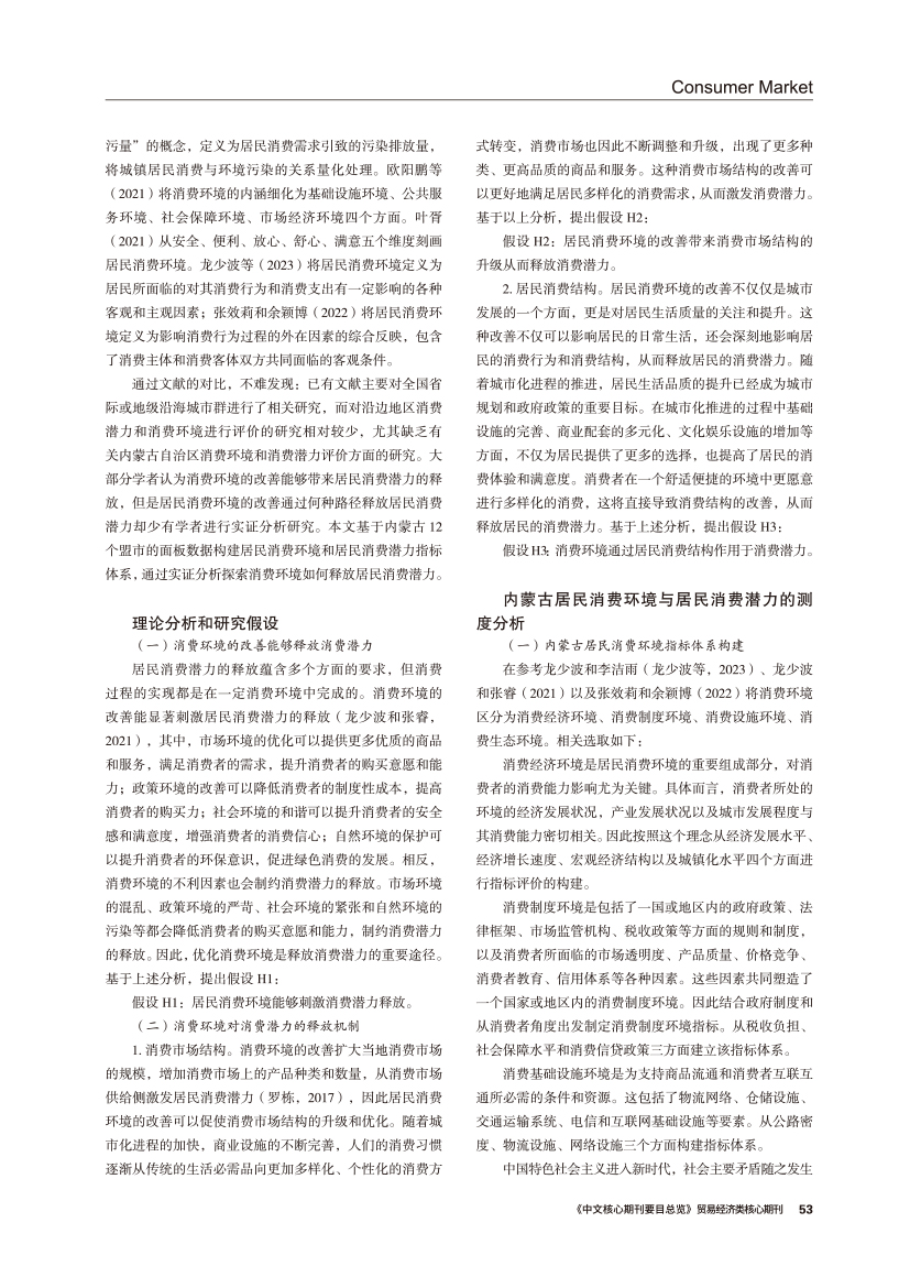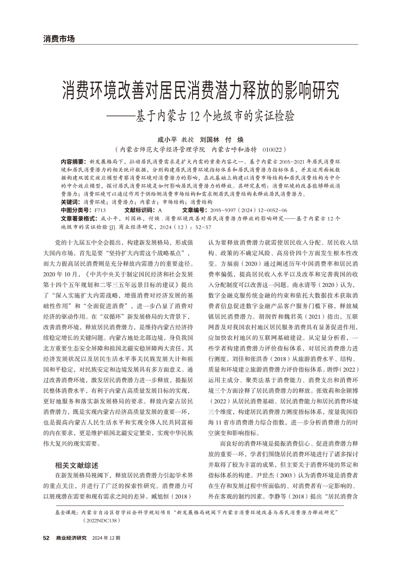 | 消费环境改善对居民消费潜力释放的影响研究 ——基于内蒙古12个地级市的实证检验 |