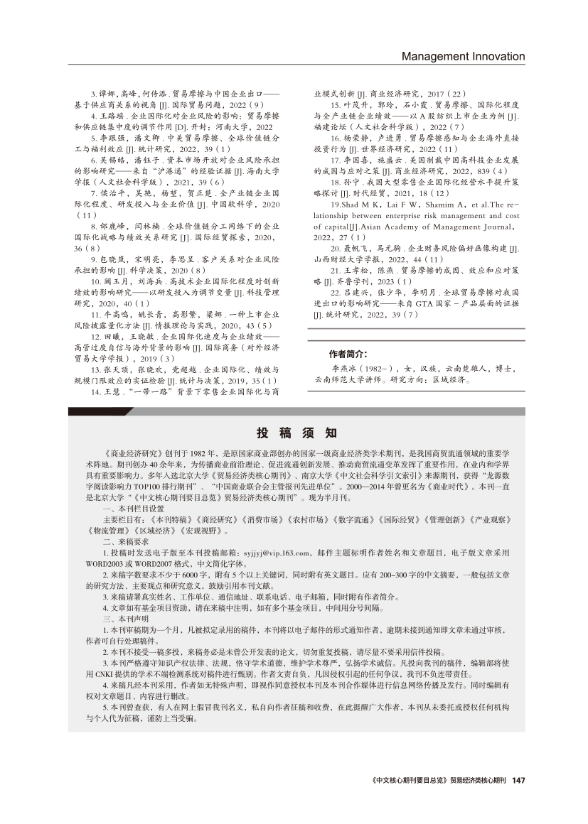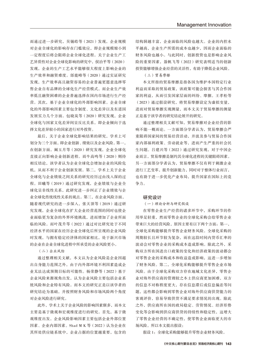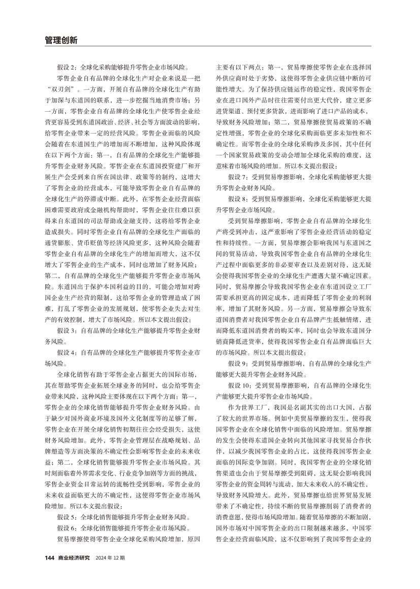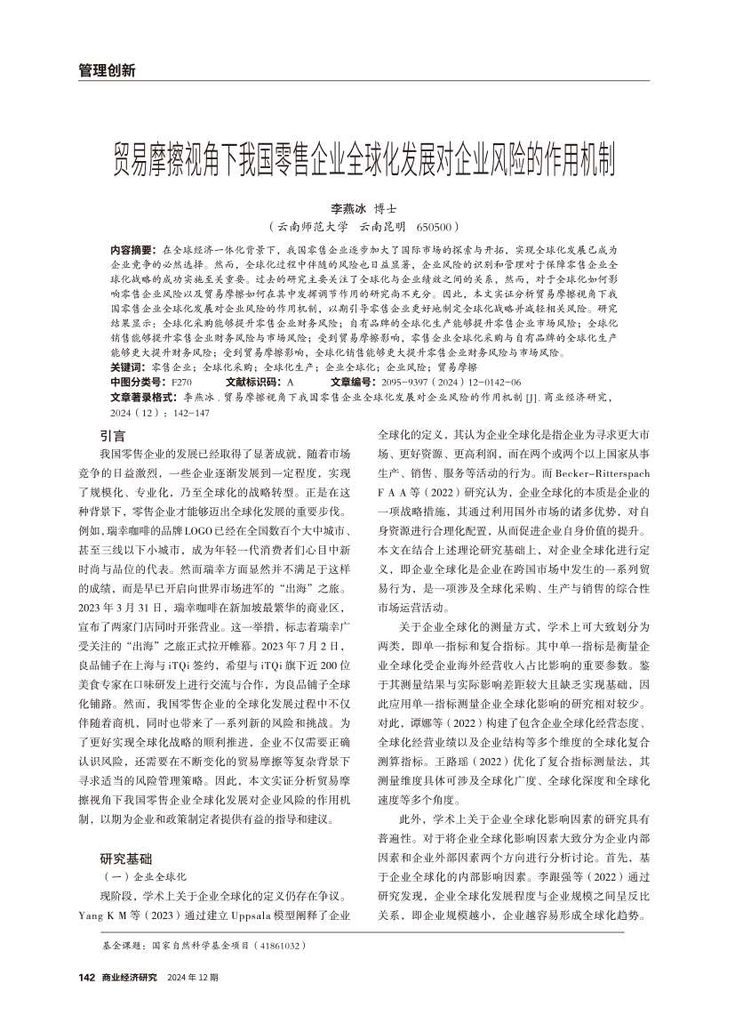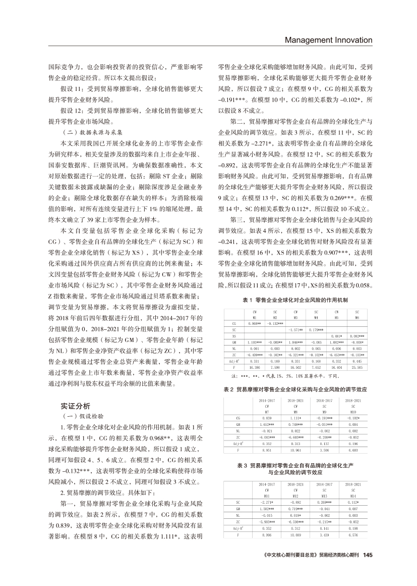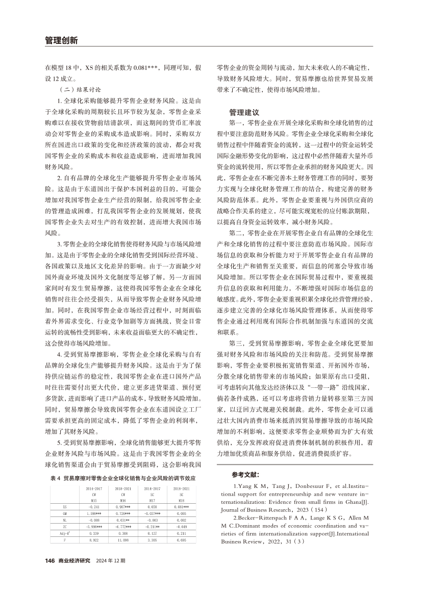 | 贸易摩擦视角下我国零售企业全球化发展对企业风险的作用机制 |