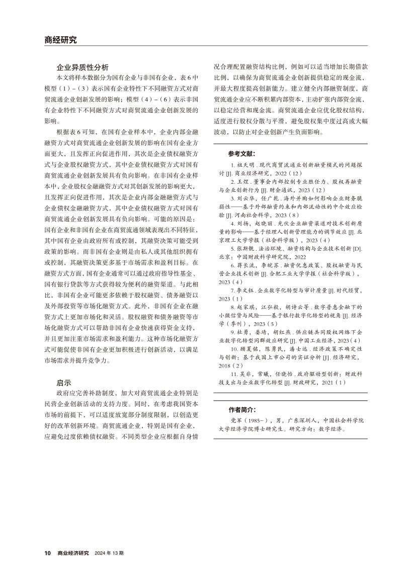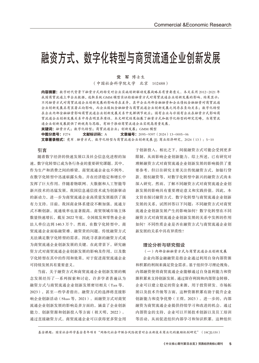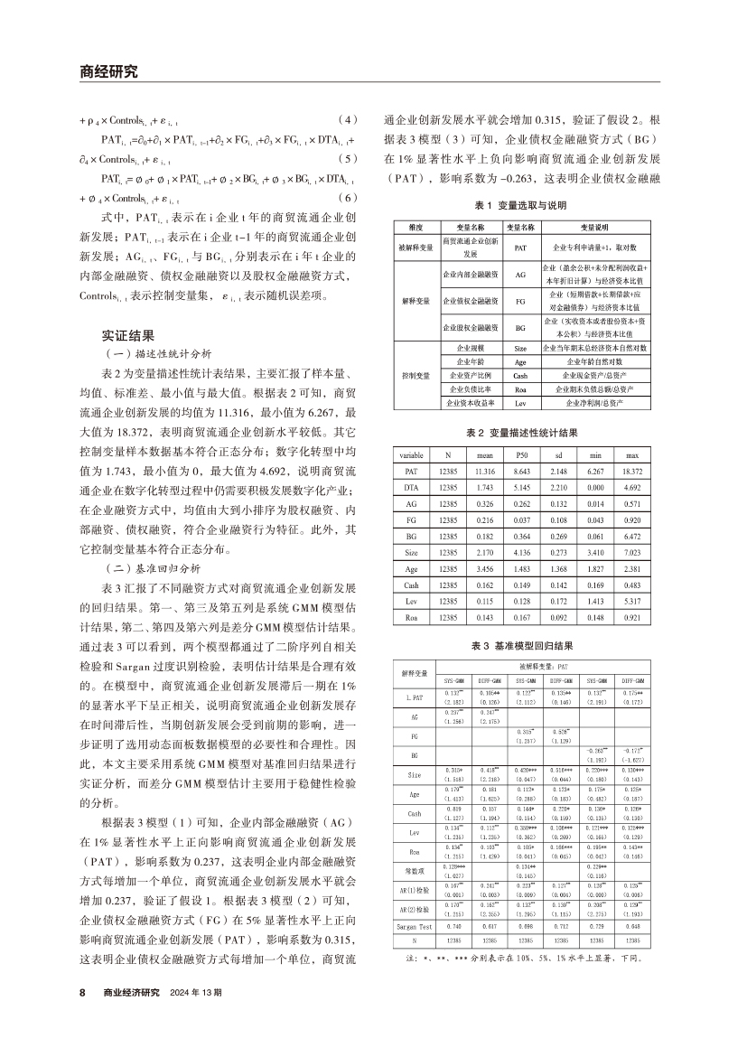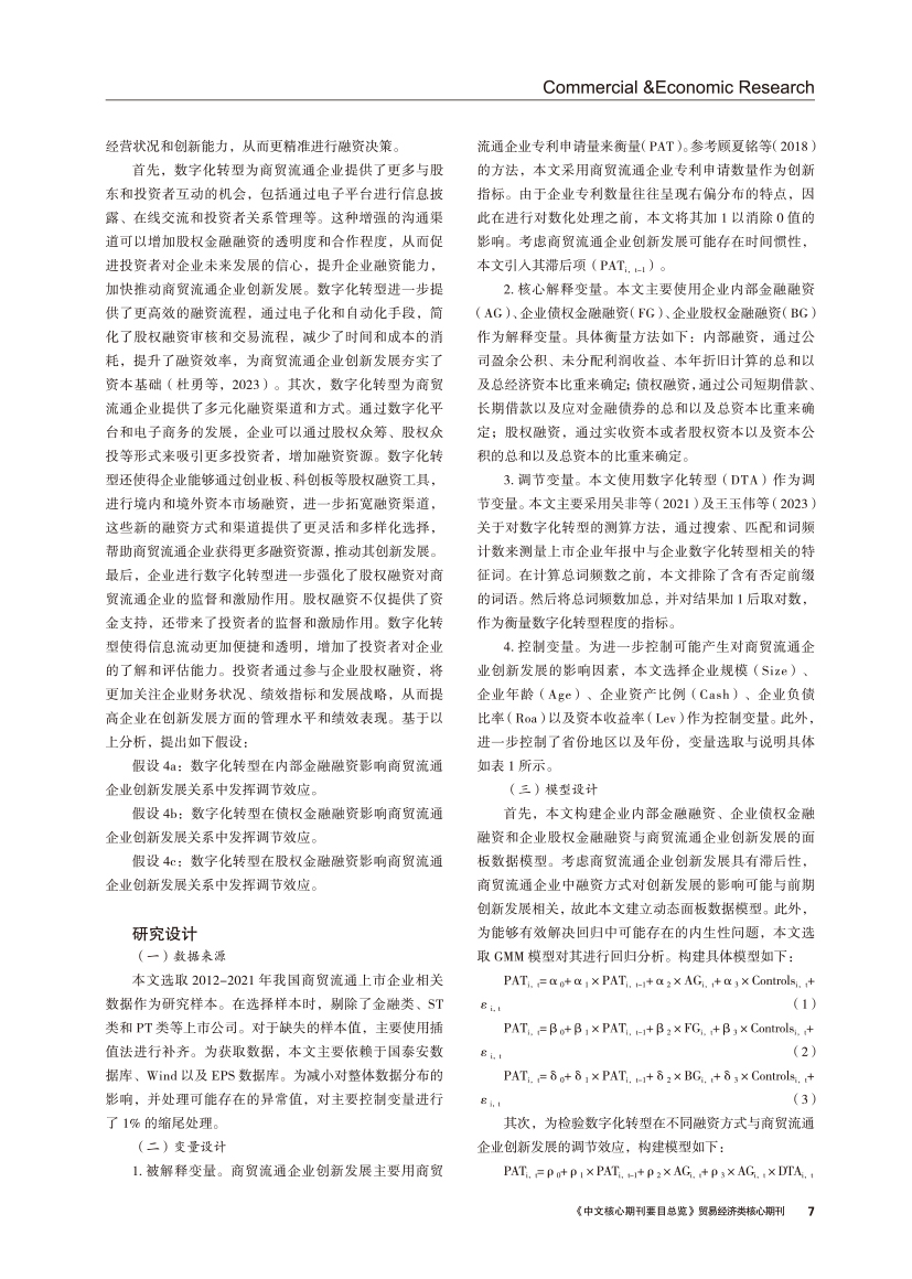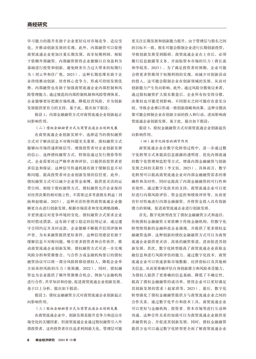 | 融资方式、数字化转型与商贸流通企业创新发展 |
