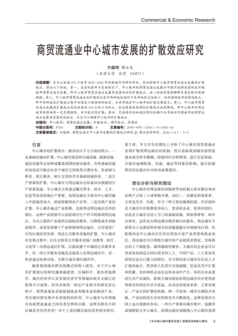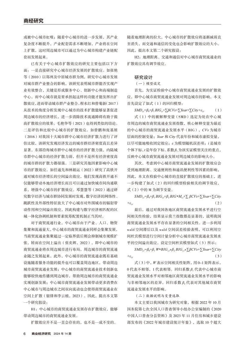 | 商贸流通业中心城市发展的扩散效应研究 |