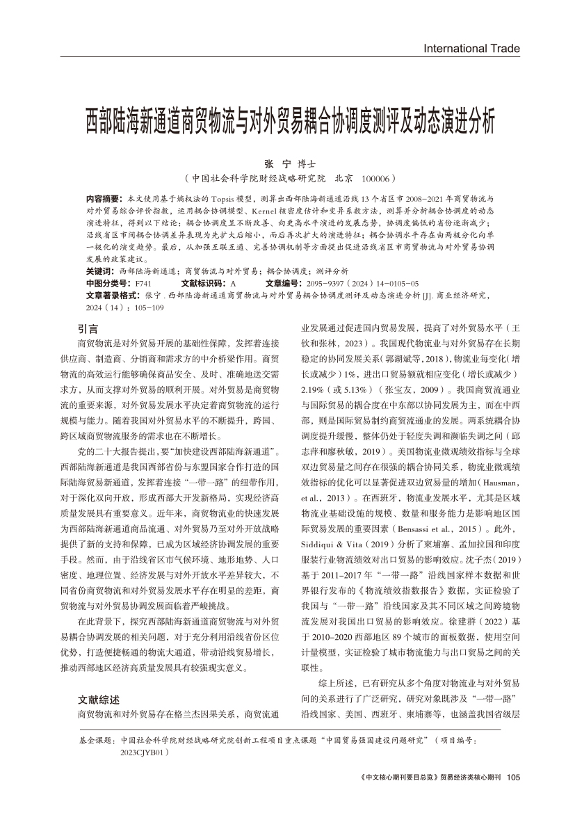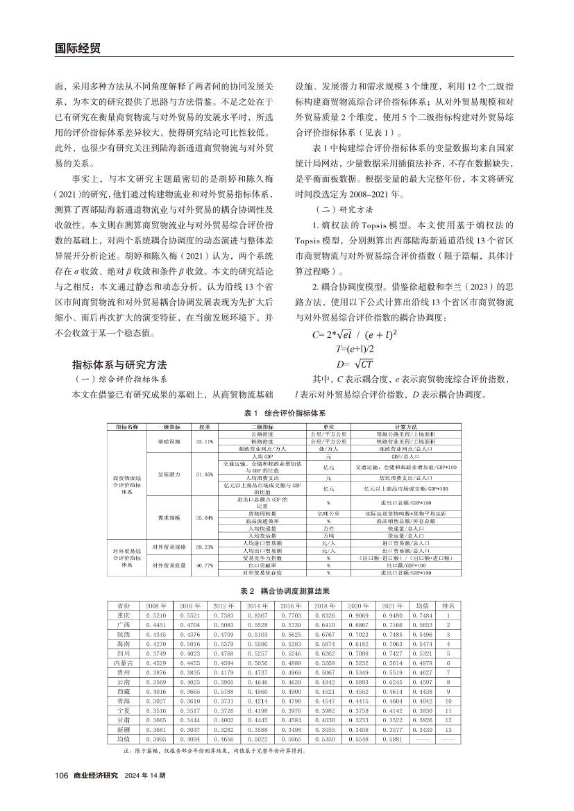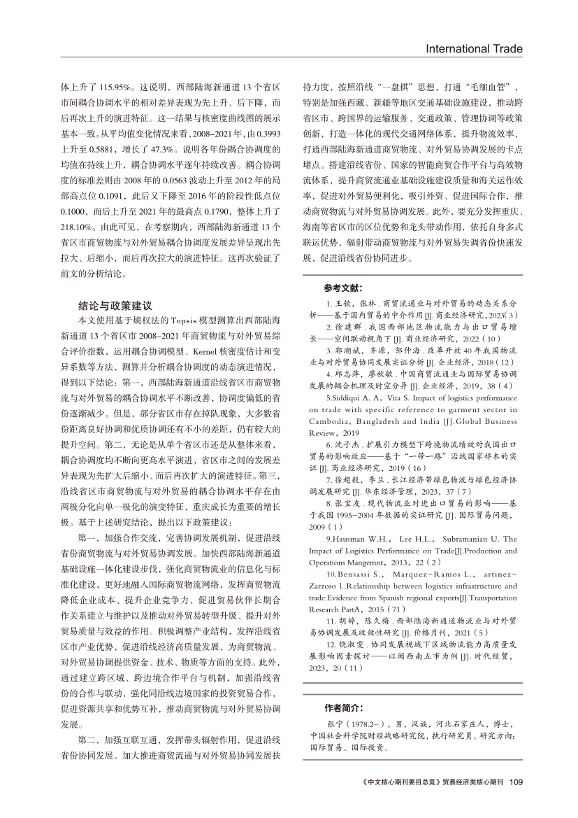 | 西部陆海新通道商贸物流与对外贸易耦合协调度测评及动态演进分析 |