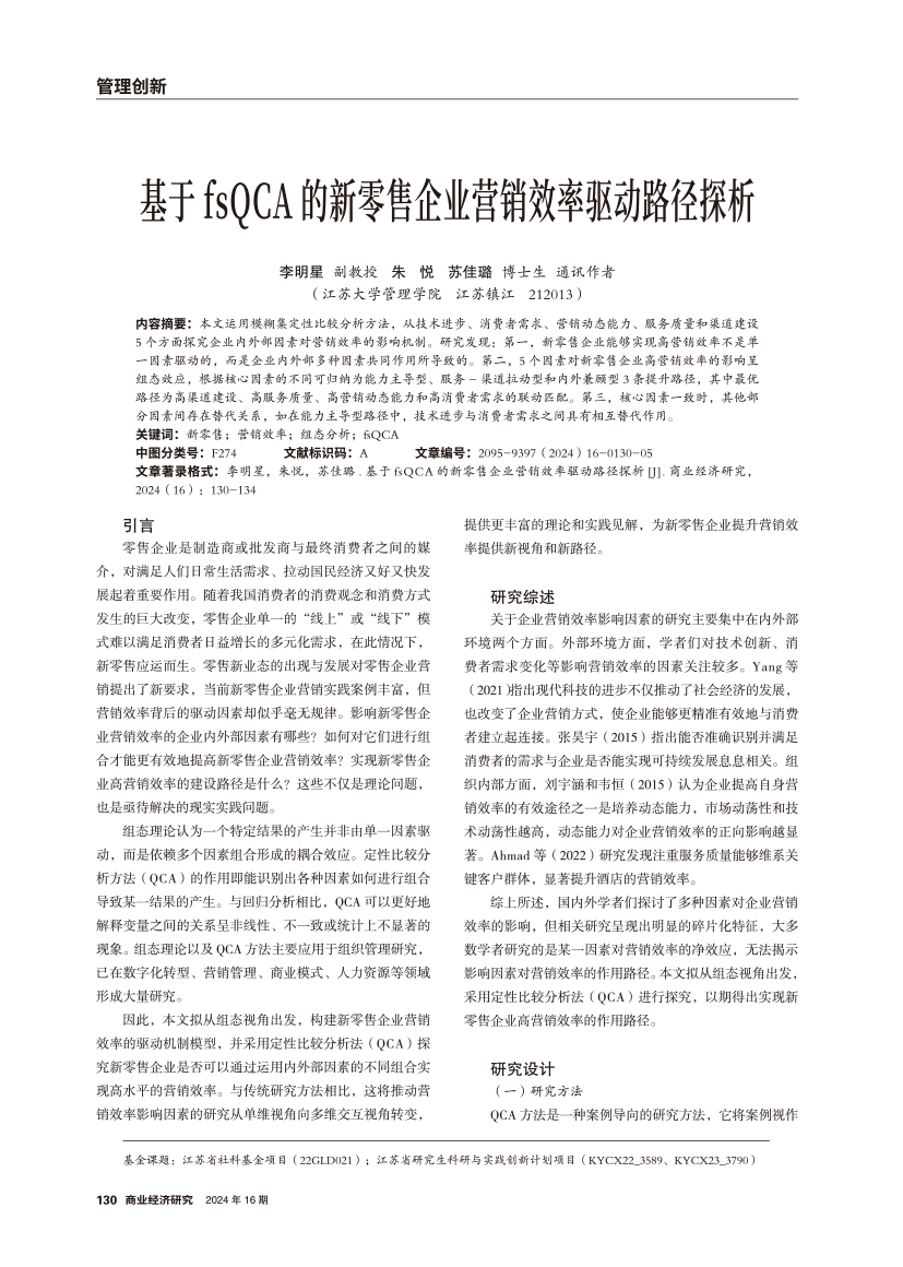 | 基于fsQCA的新零售企业营销效率驱动路径探析 |
