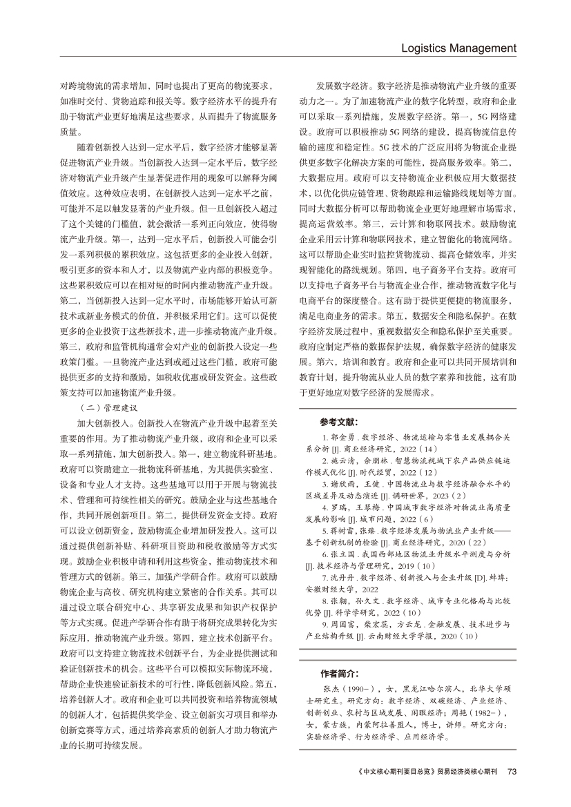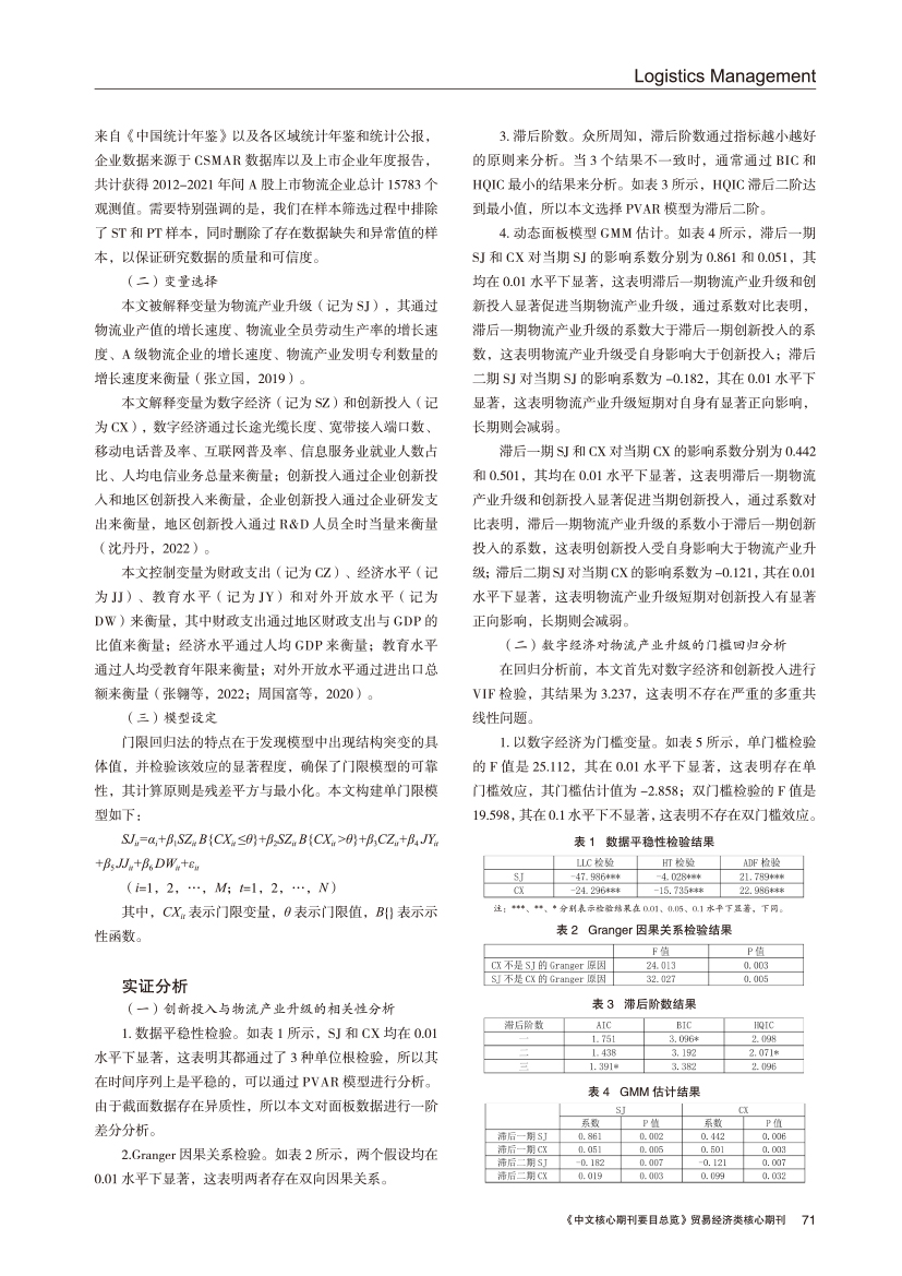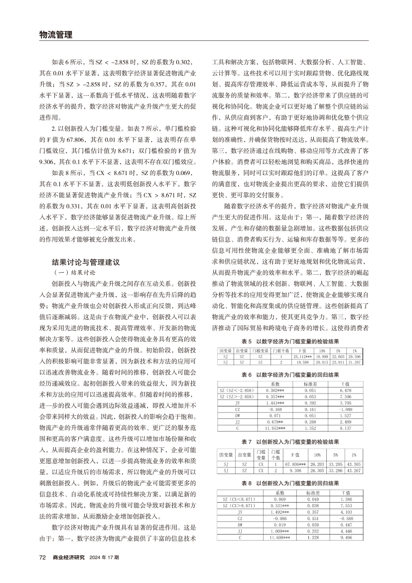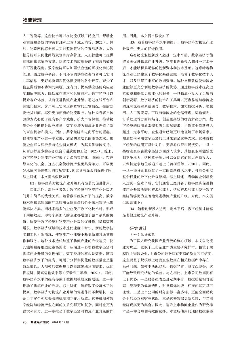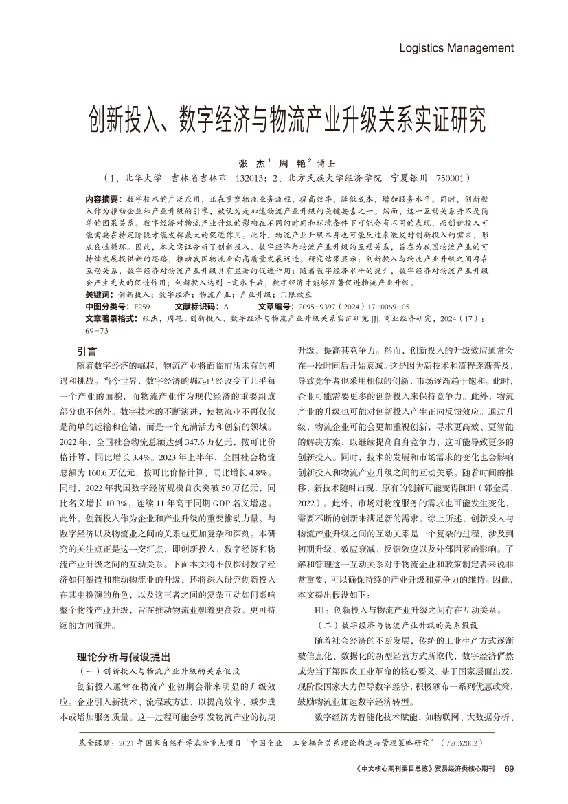 | 创新投入、数字经济与物流产业升级关系实证研究 |