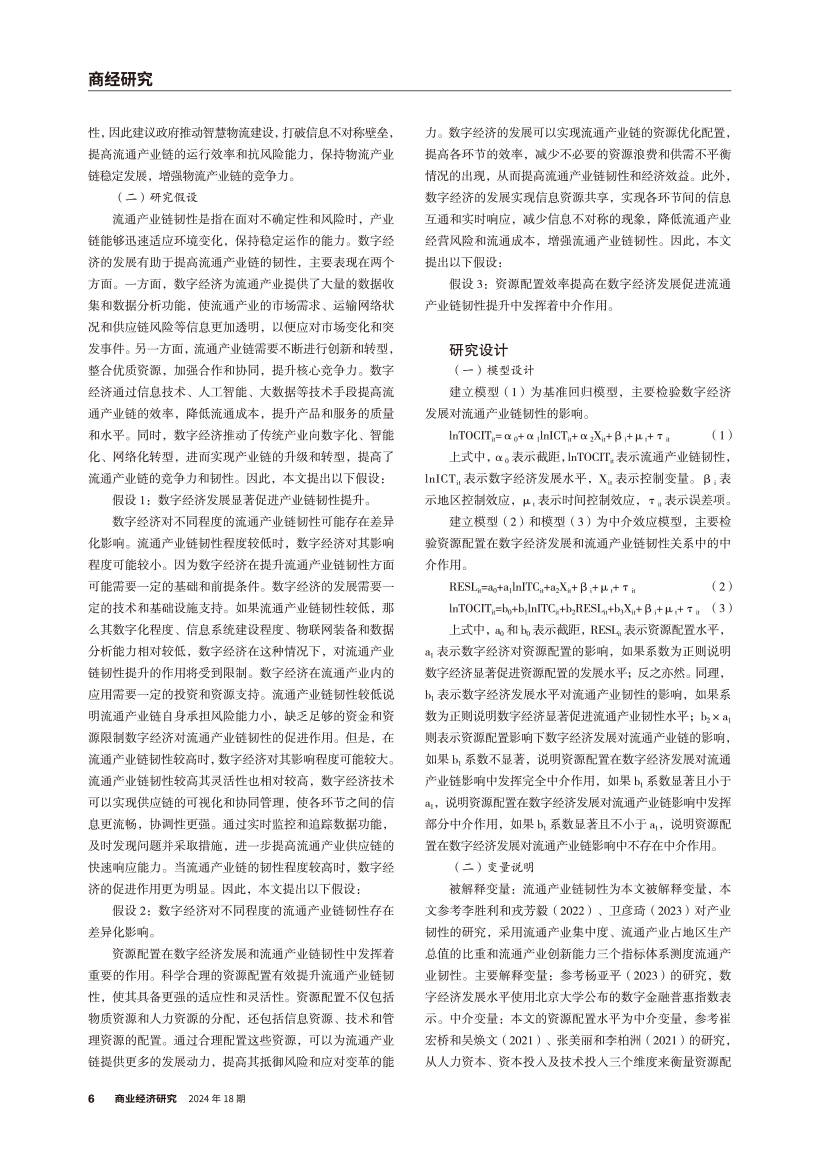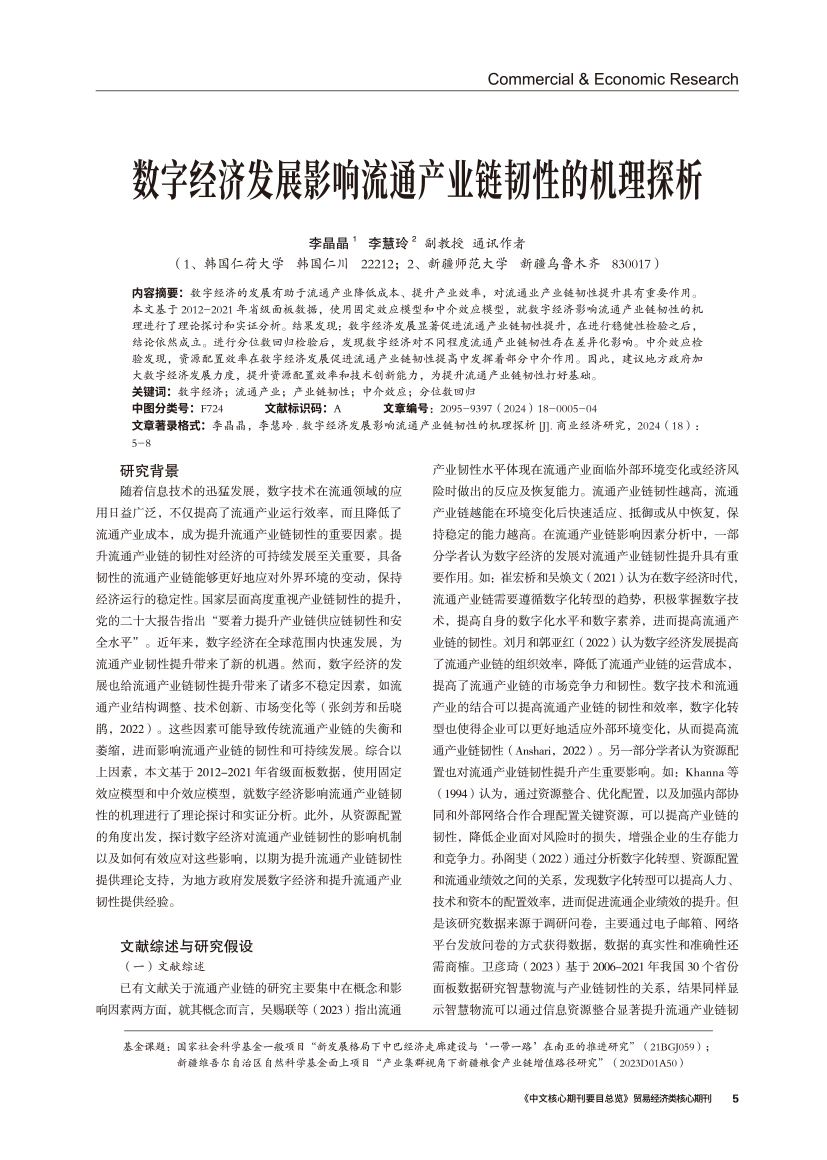 | 数字经济发展影响流通产业链韧性的机理探析 |