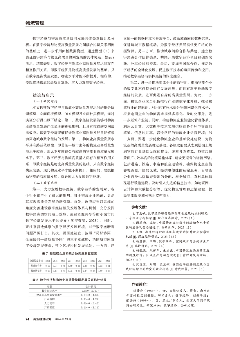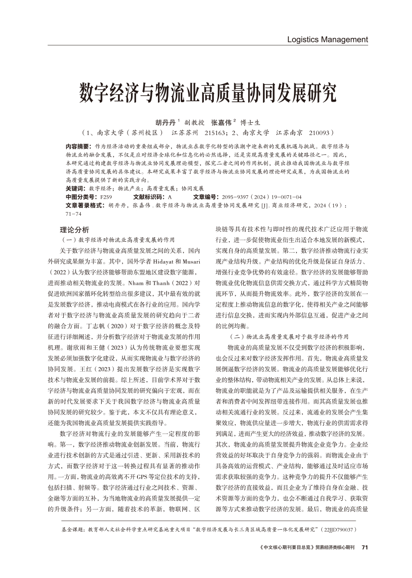 | 数字经济与物流业高质量协同发展研究 |