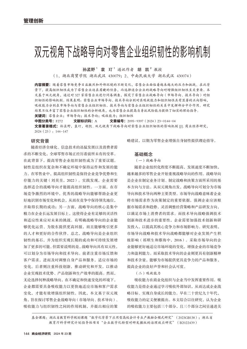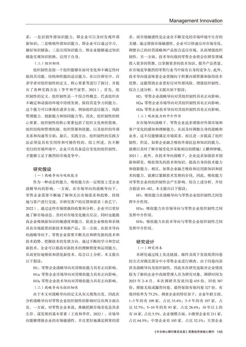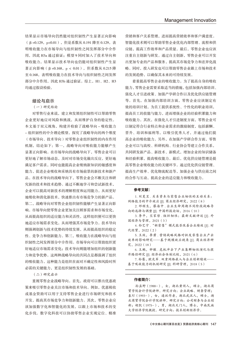 | 双元视角下战略导向对零售企业组织韧性的影响机制 |