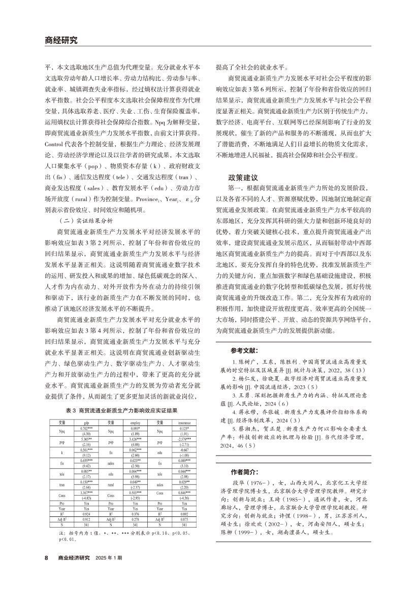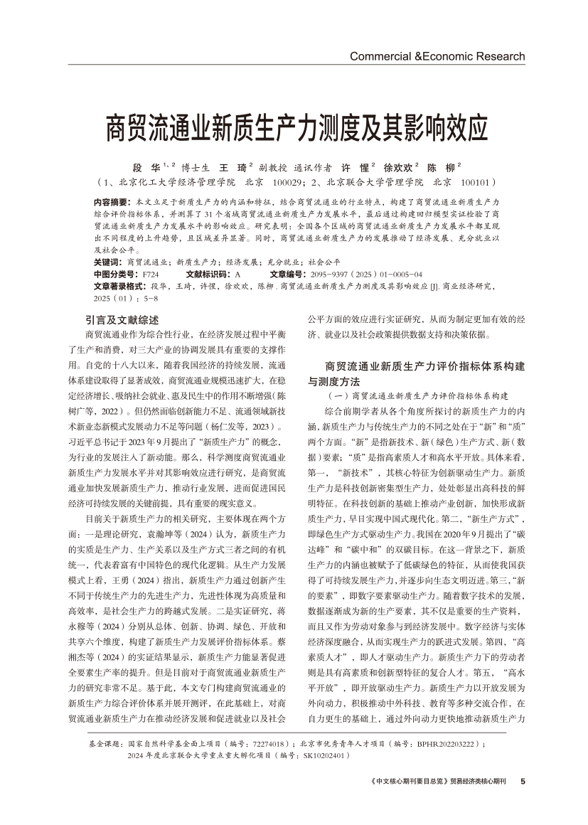 | 商贸流通业新质生产力测度及其影响效应 |