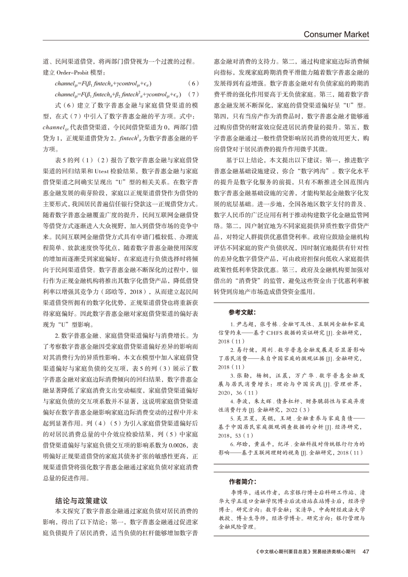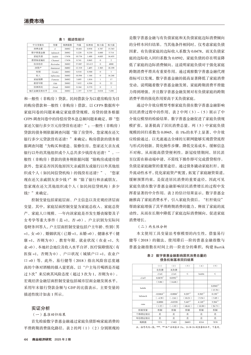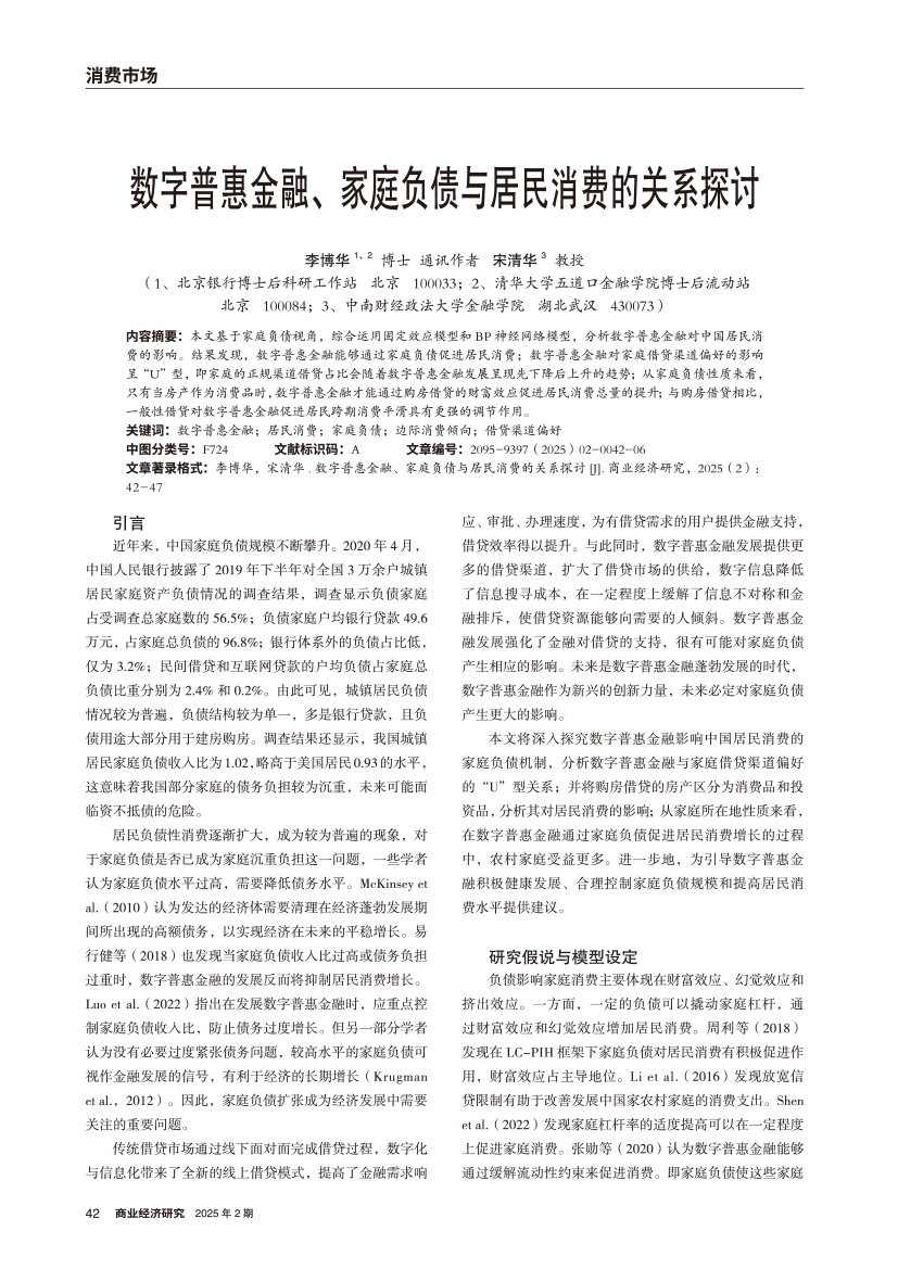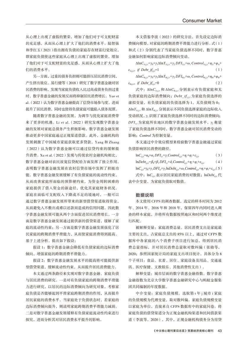 | 数字普惠金融、家庭负债与居民消费的关系探讨 |