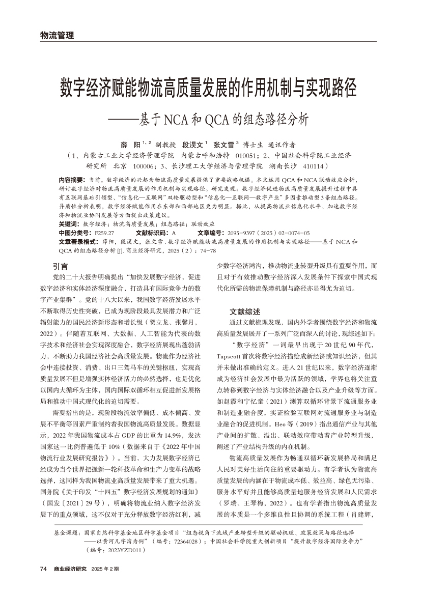 | 数字经济赋能物流高质量发展的作用机制与实现路径 ——基于NCA和QCA的组态路径分析 |