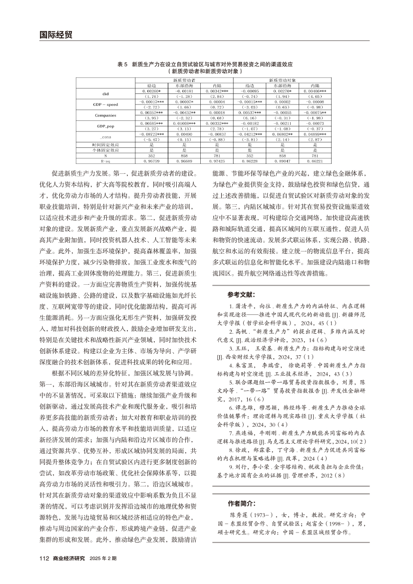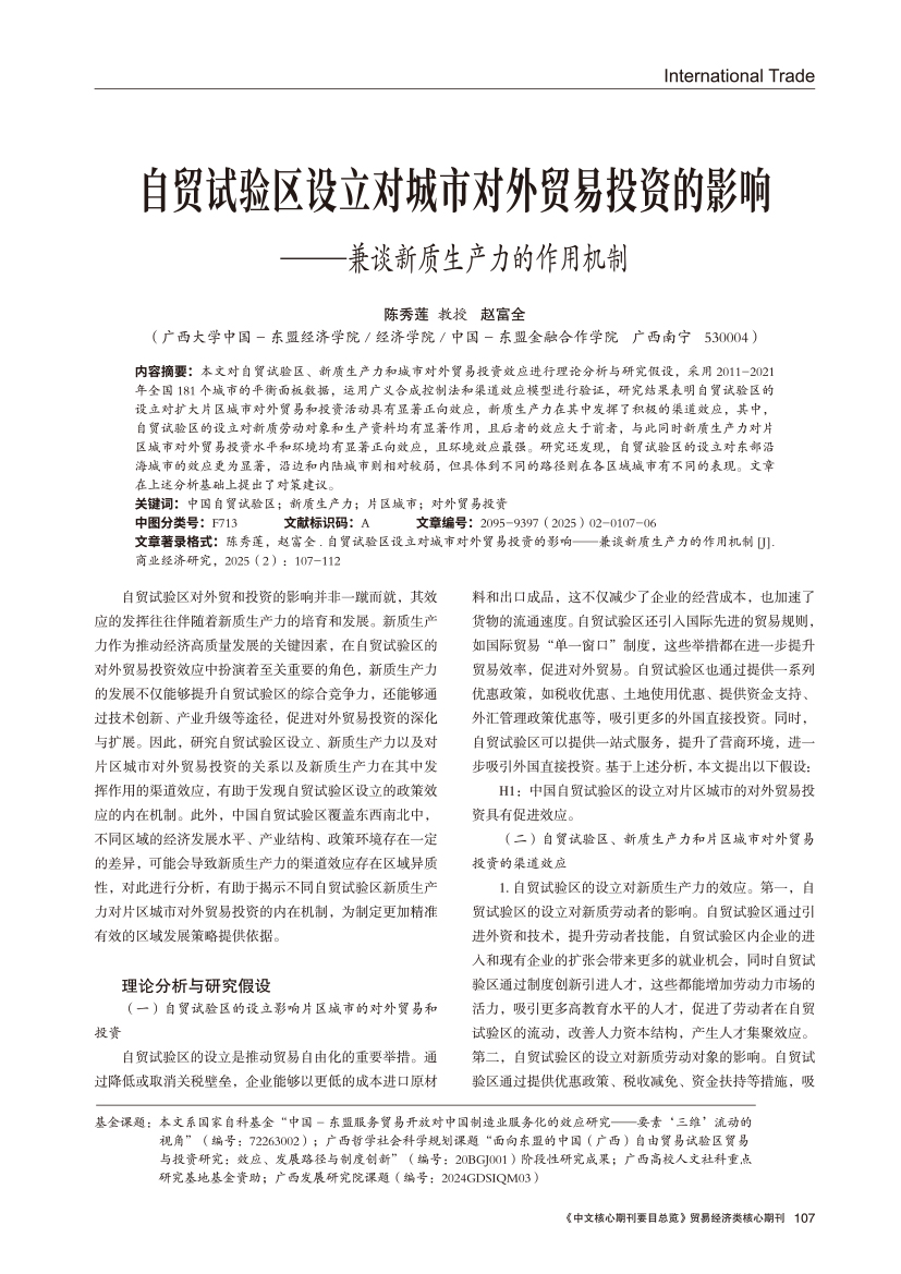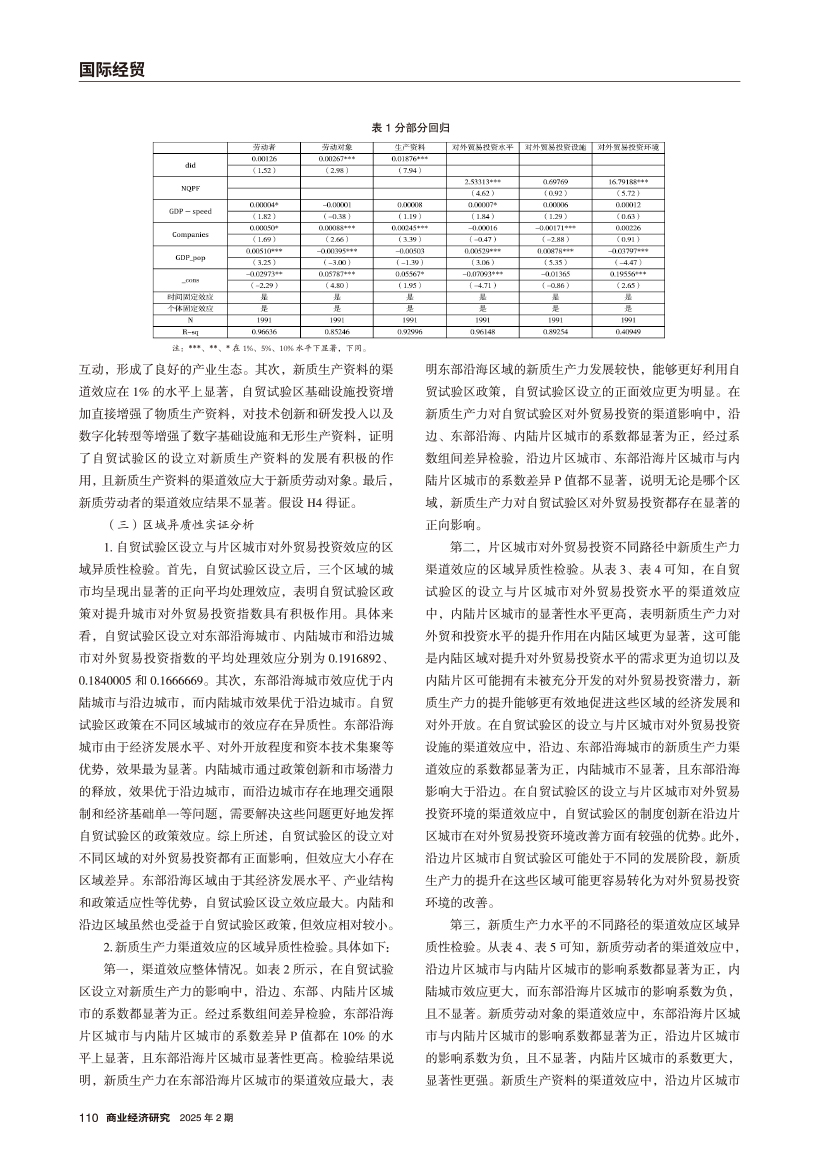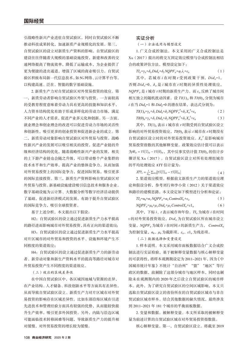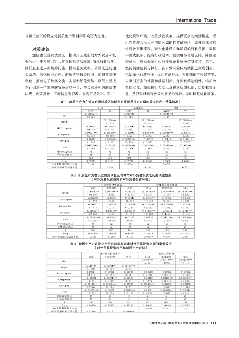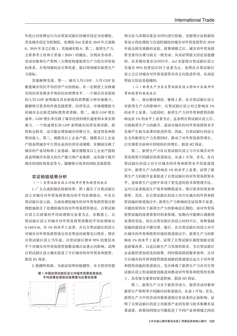 | 自贸试验区设立对城市对外贸易投资的影响 ——兼谈新质生产力的作用机制 |