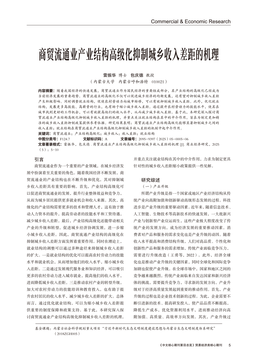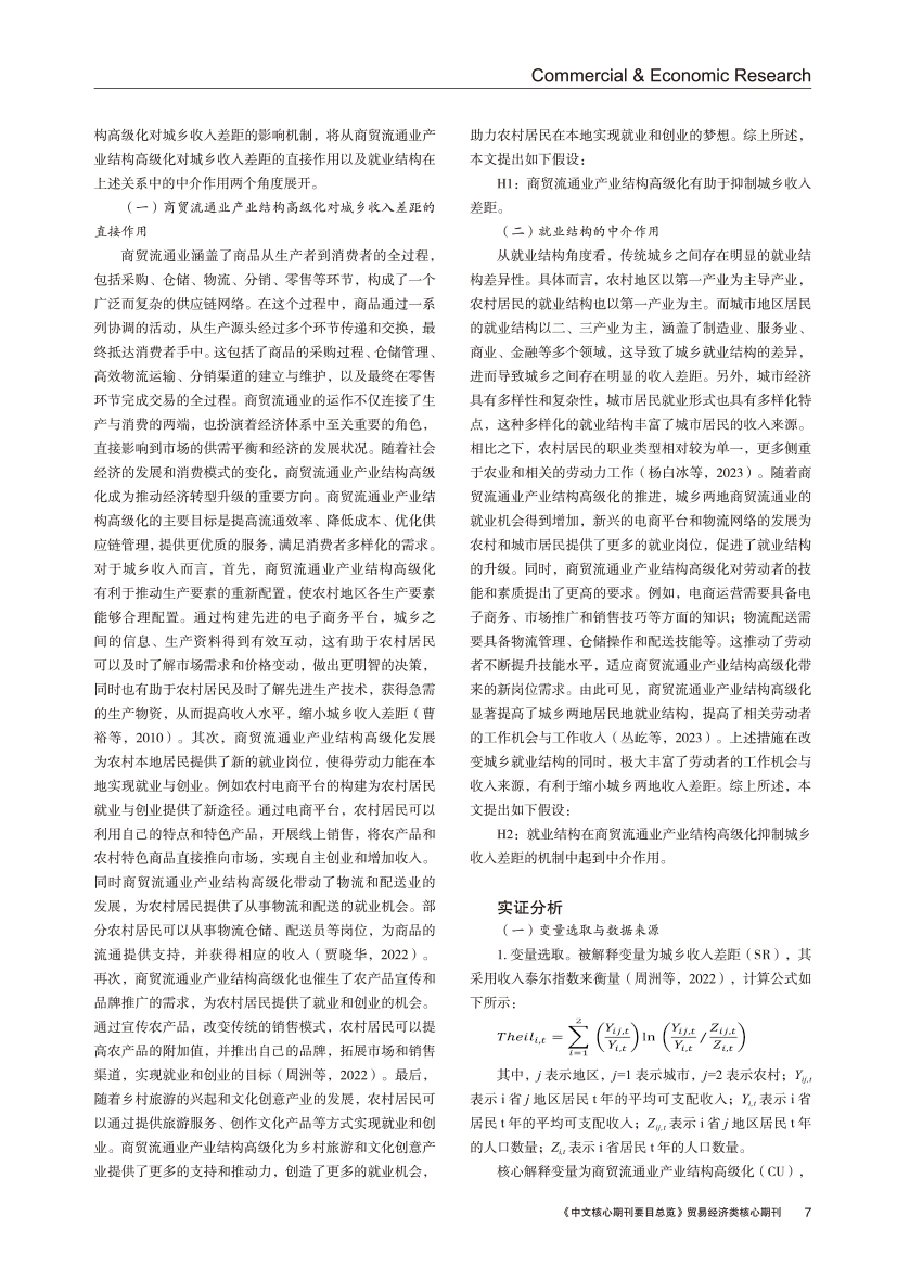 | 商贸流通业产业结构高级化抑制城乡收入差距的机理 |
