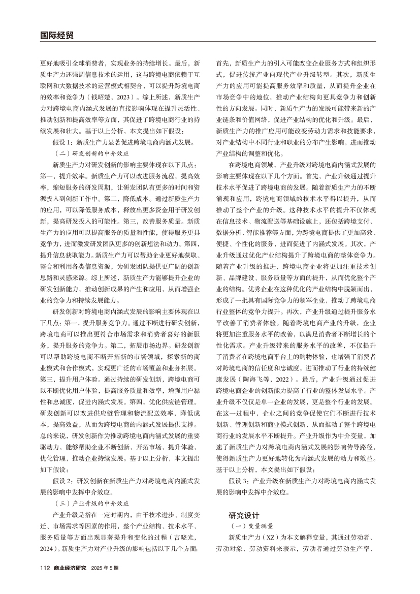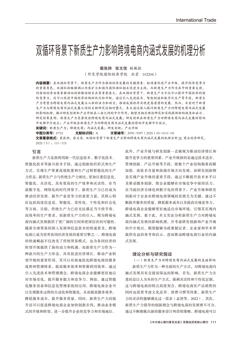 | 双循环背景下新质生产力影响跨境电商内涵式发展的机理分析 |