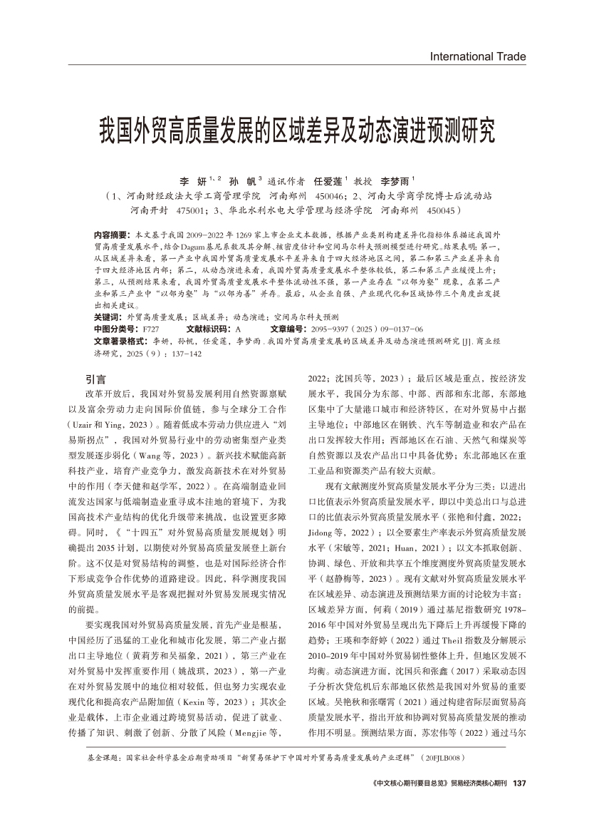 | 我国外贸高质量发展的区域差异及动态演进预测研究 |