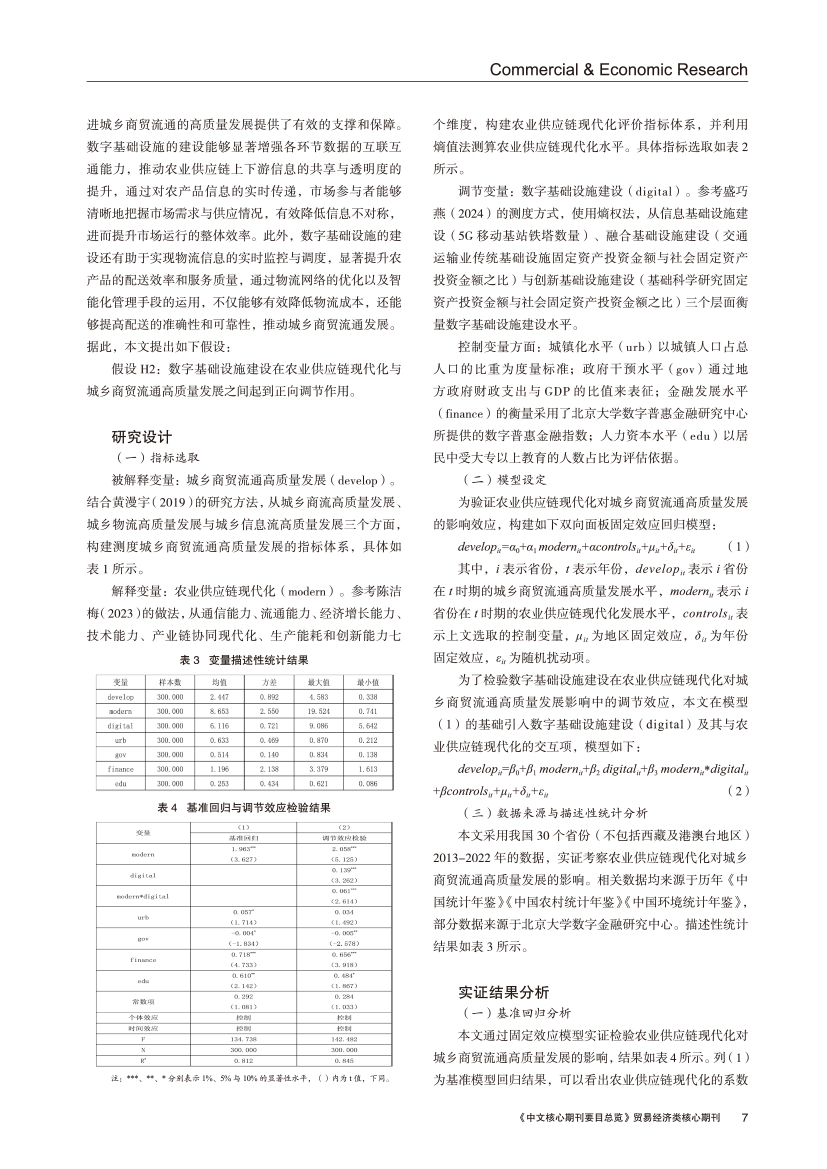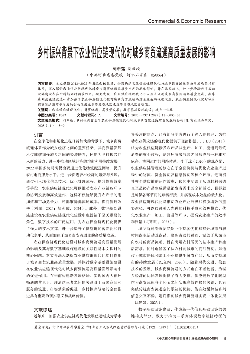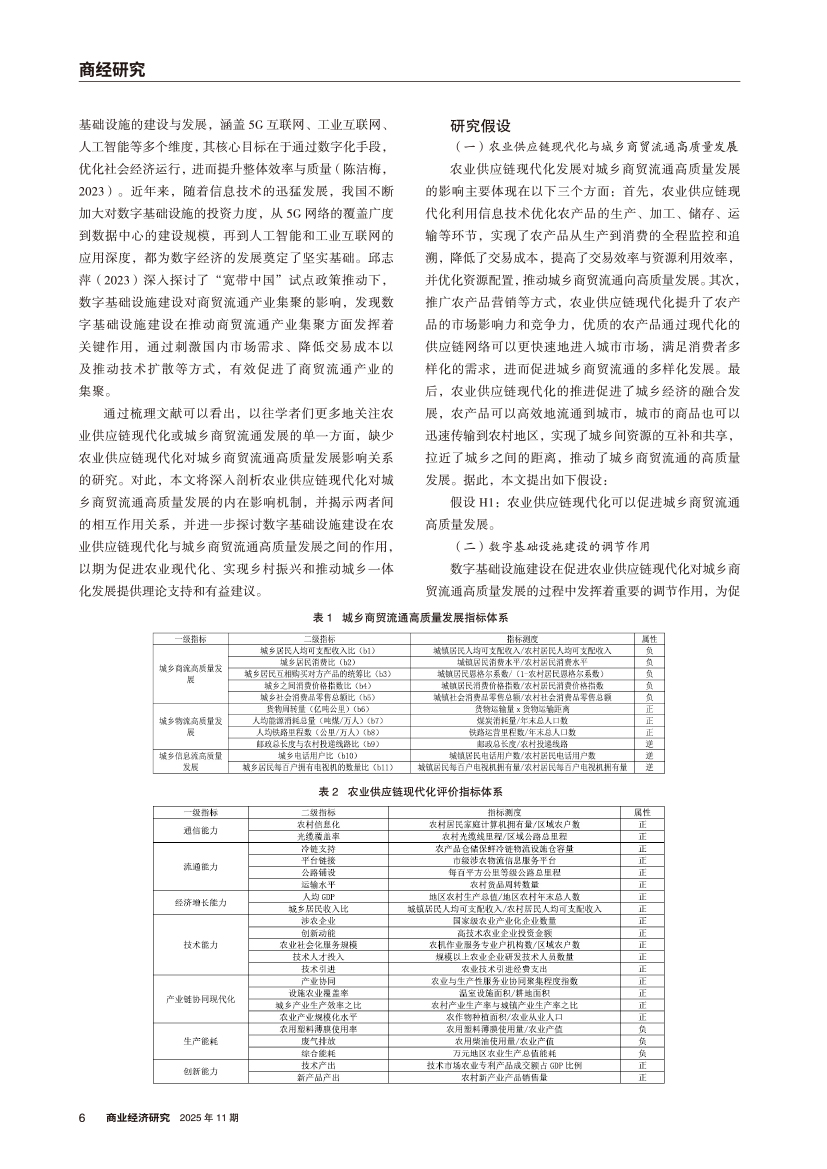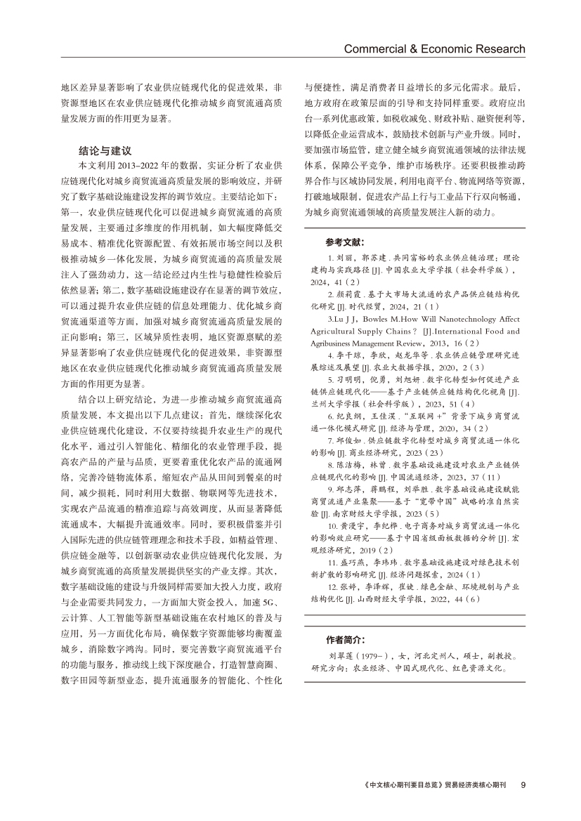 | 乡村振兴背景下农业供应链现代化对城乡商贸流通高质量发展的影响 |