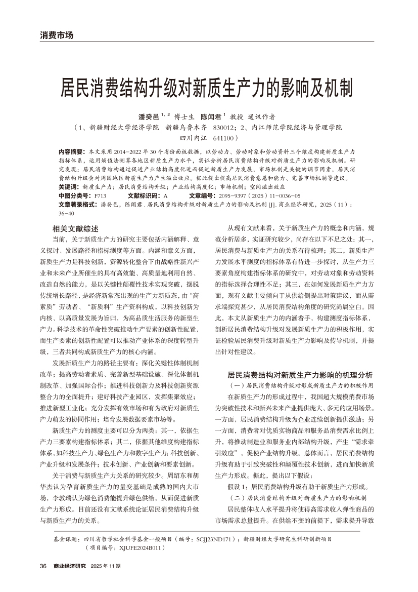 | 居民消费结构升级对新质生产力的影响及机制 |