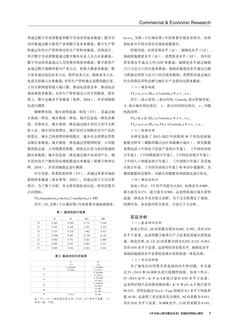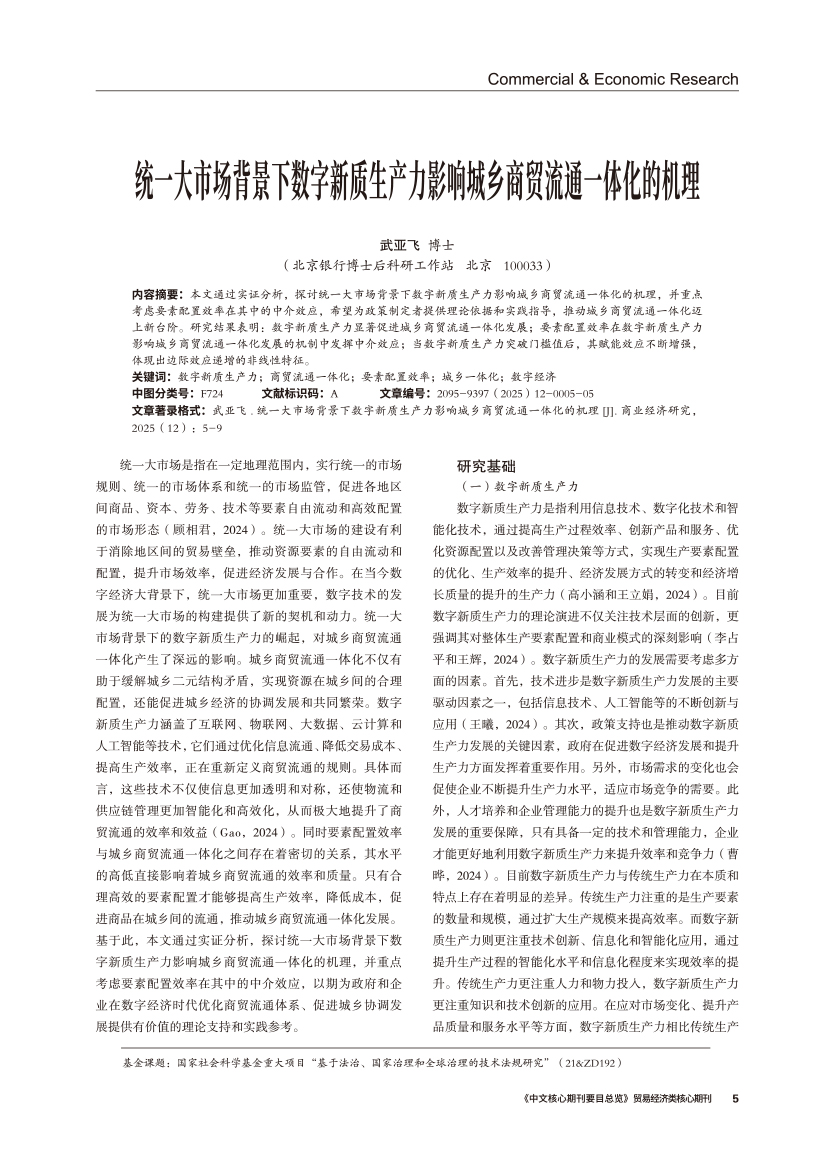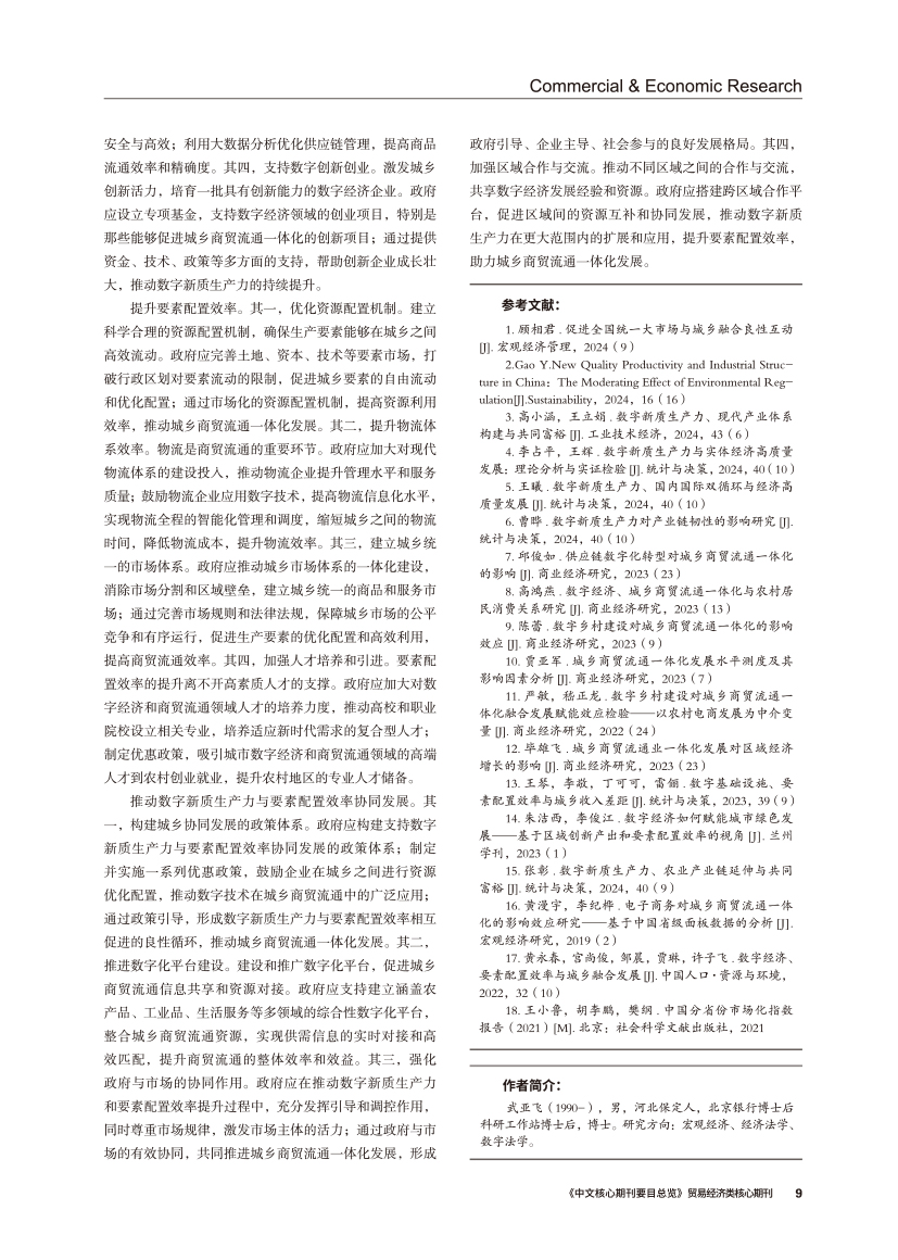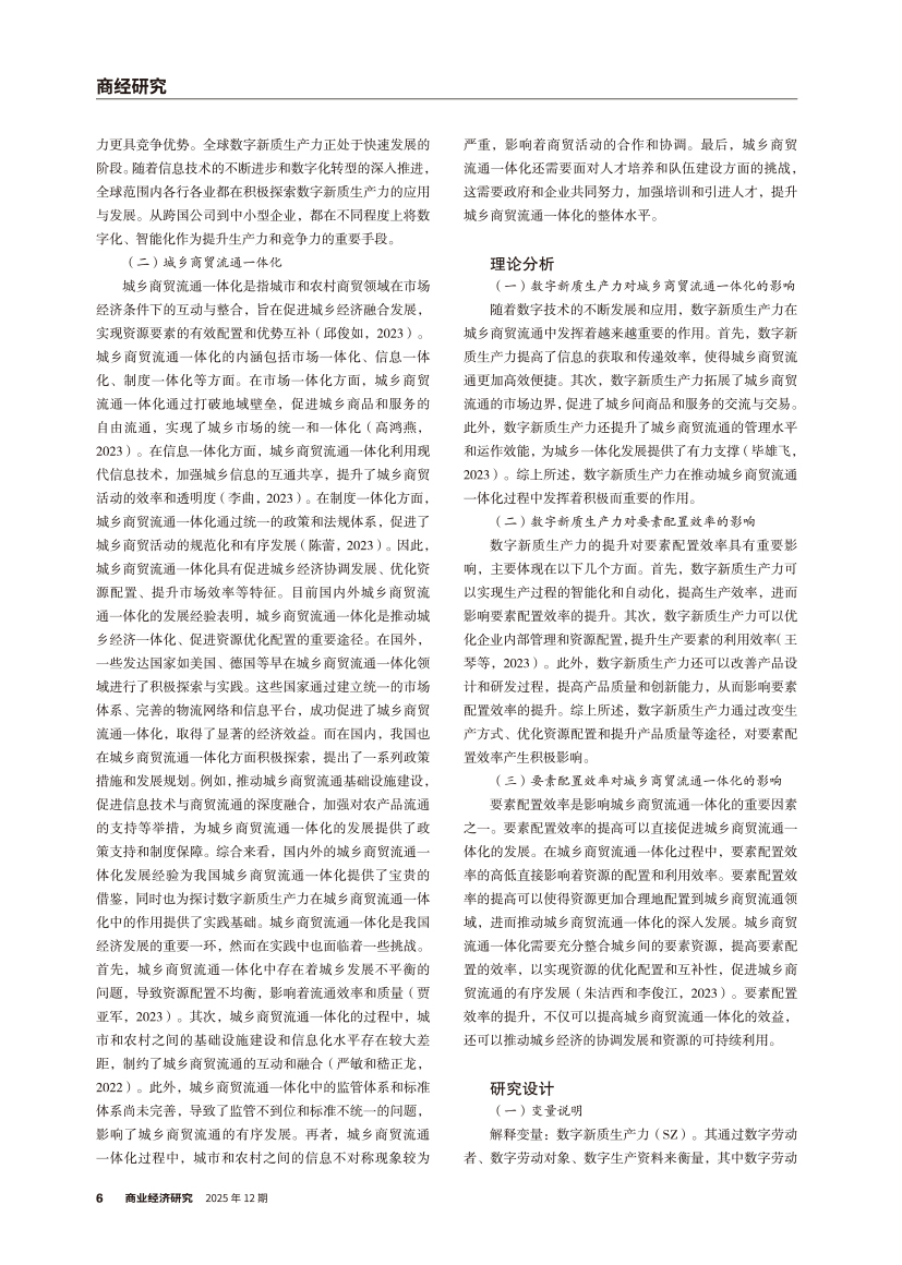 | 统一大市场背景下数字新质生产力影响城乡商贸流通一体化的机理 |