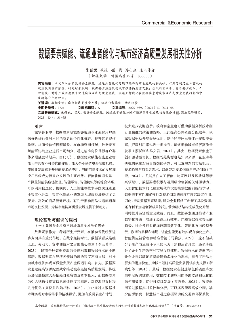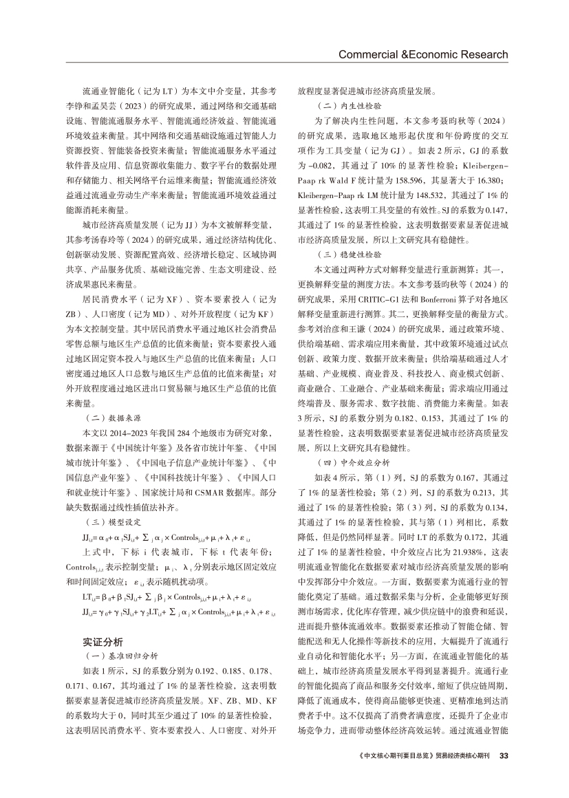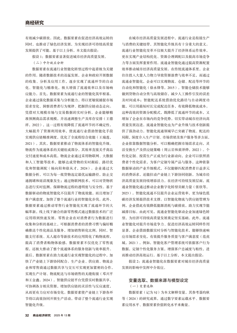 | 数据要素赋能、流通业智能化与城市经济高质量发展相关性分析 |