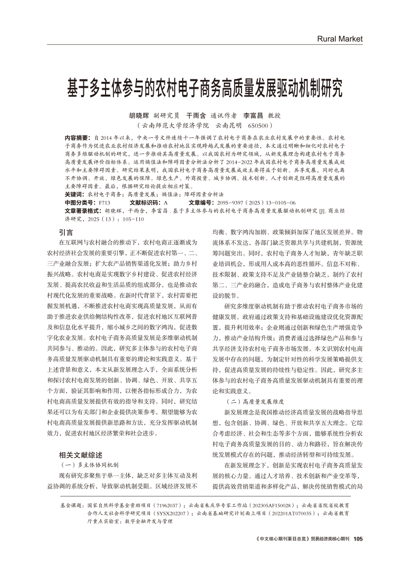 | 基于多主体参与的农村电子商务高质量发展驱动机制研究 |