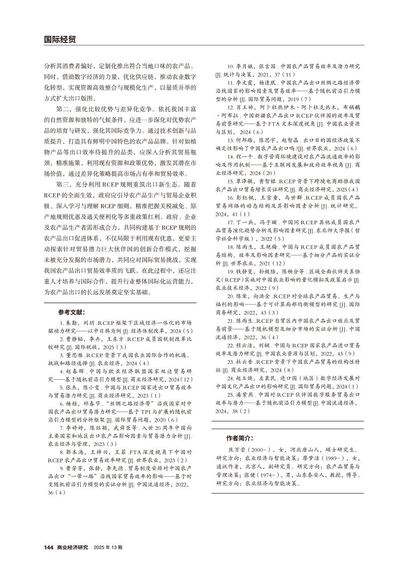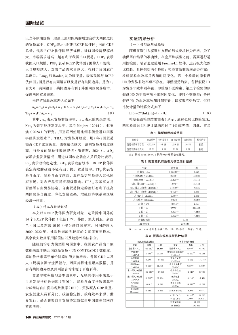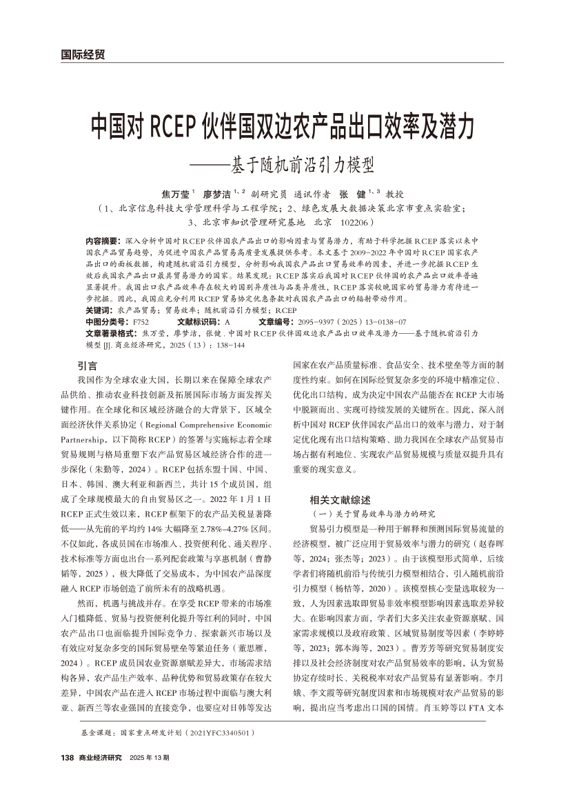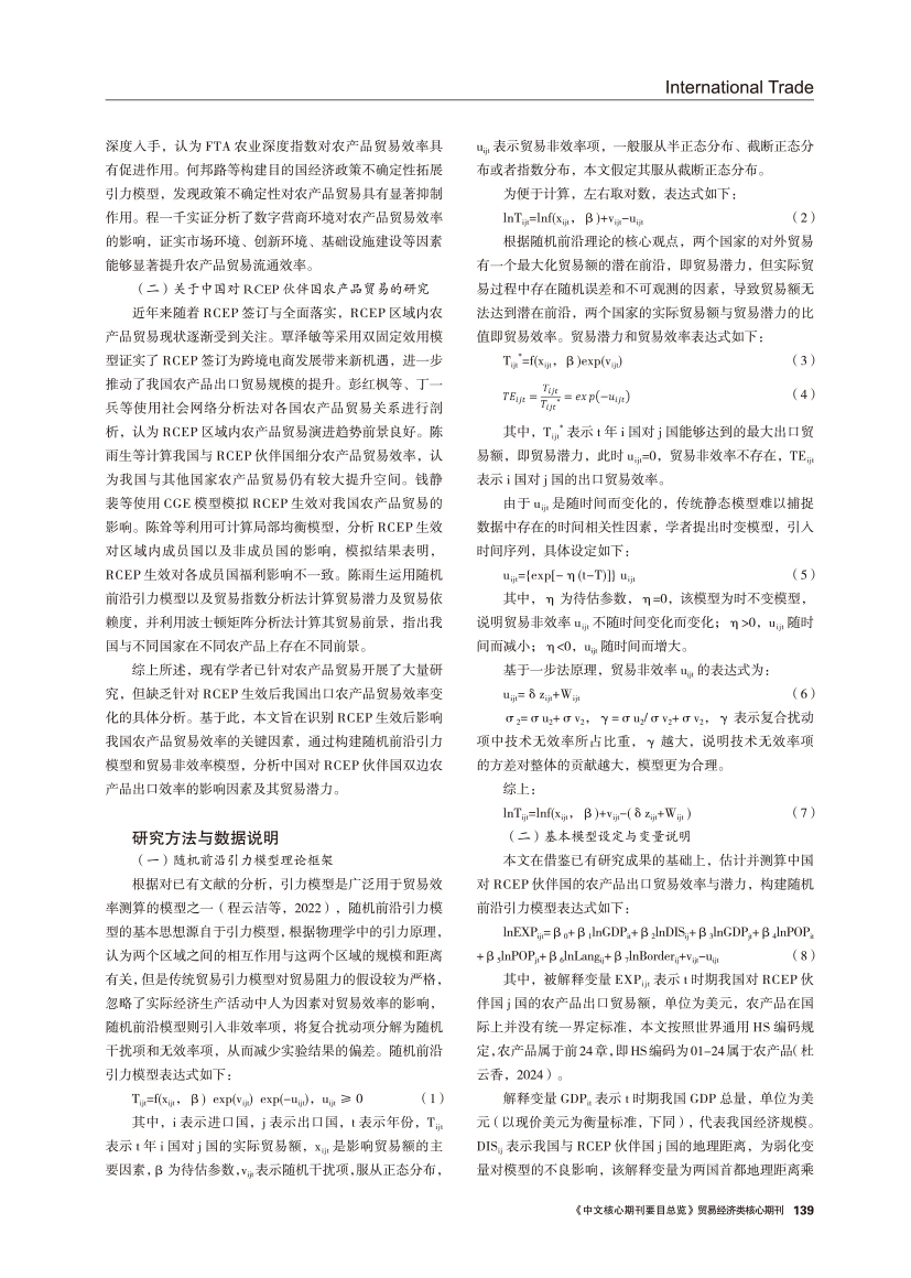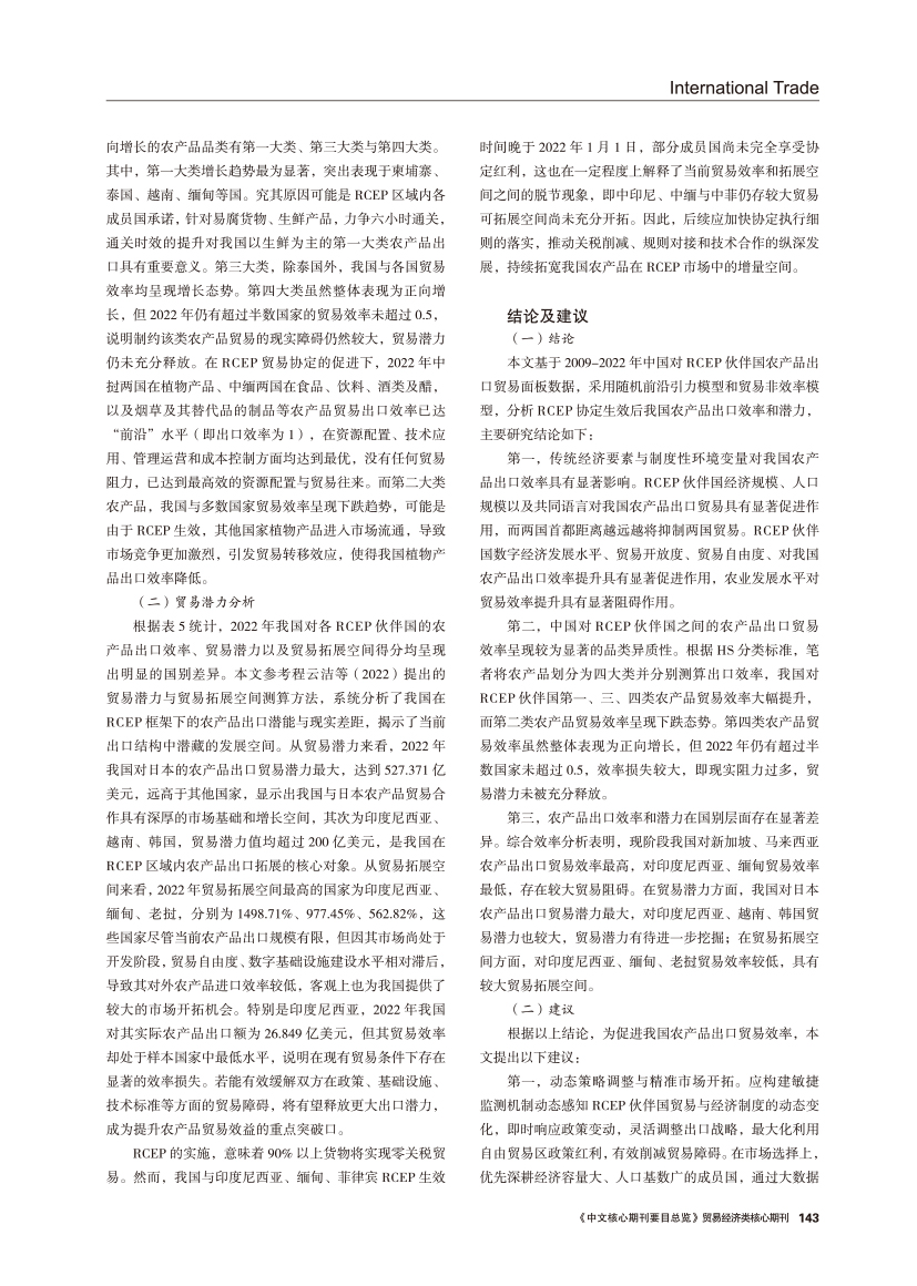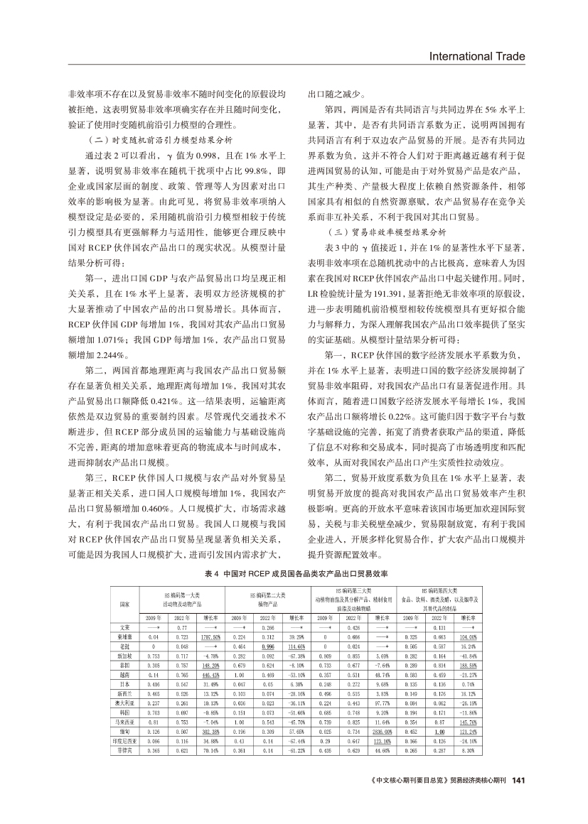 | 中国对RCEP伙伴国双边农产品出口效率及潜力 ——基于随机前沿引力模型 |